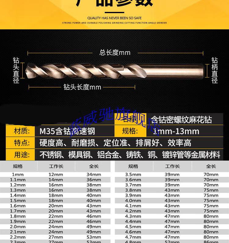 304 stainless steel drill bit high cobalt super hard M42 cobalt-containing straight shank taper shank twist drill steel copper drilling 1 9 points 0mm 2 pieces