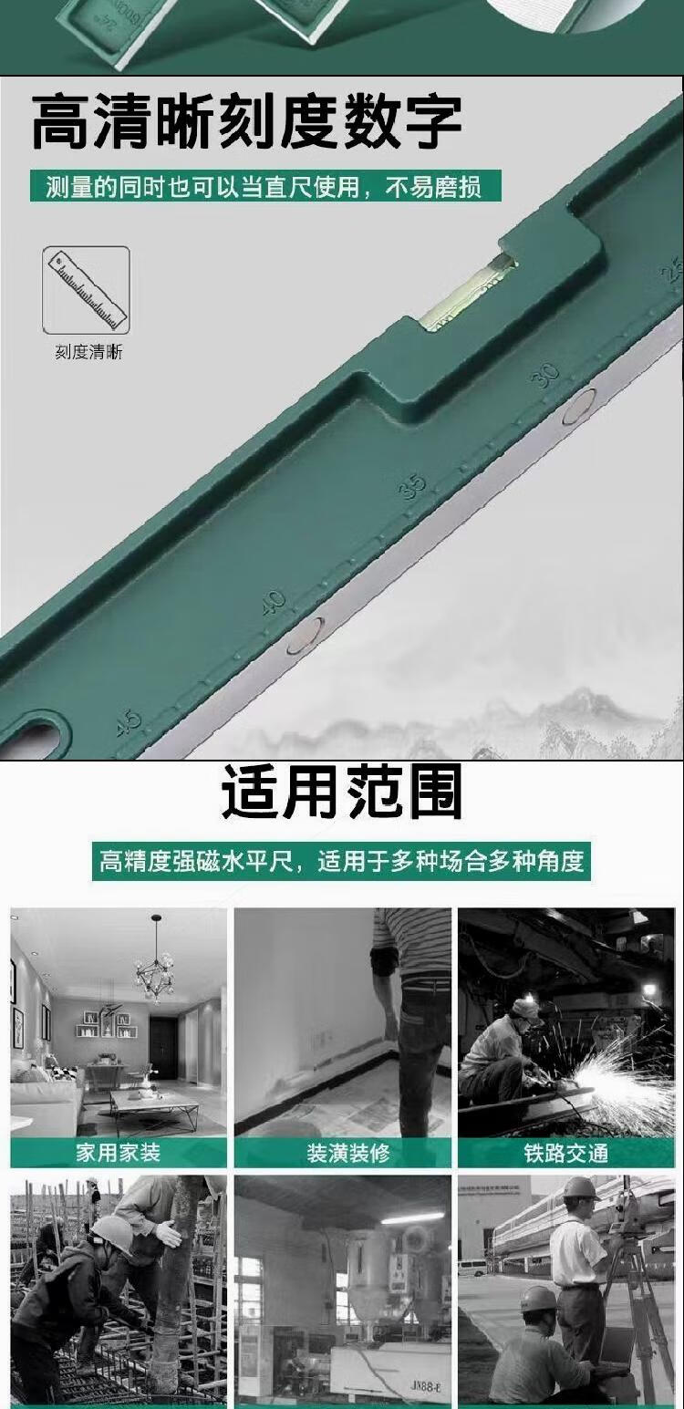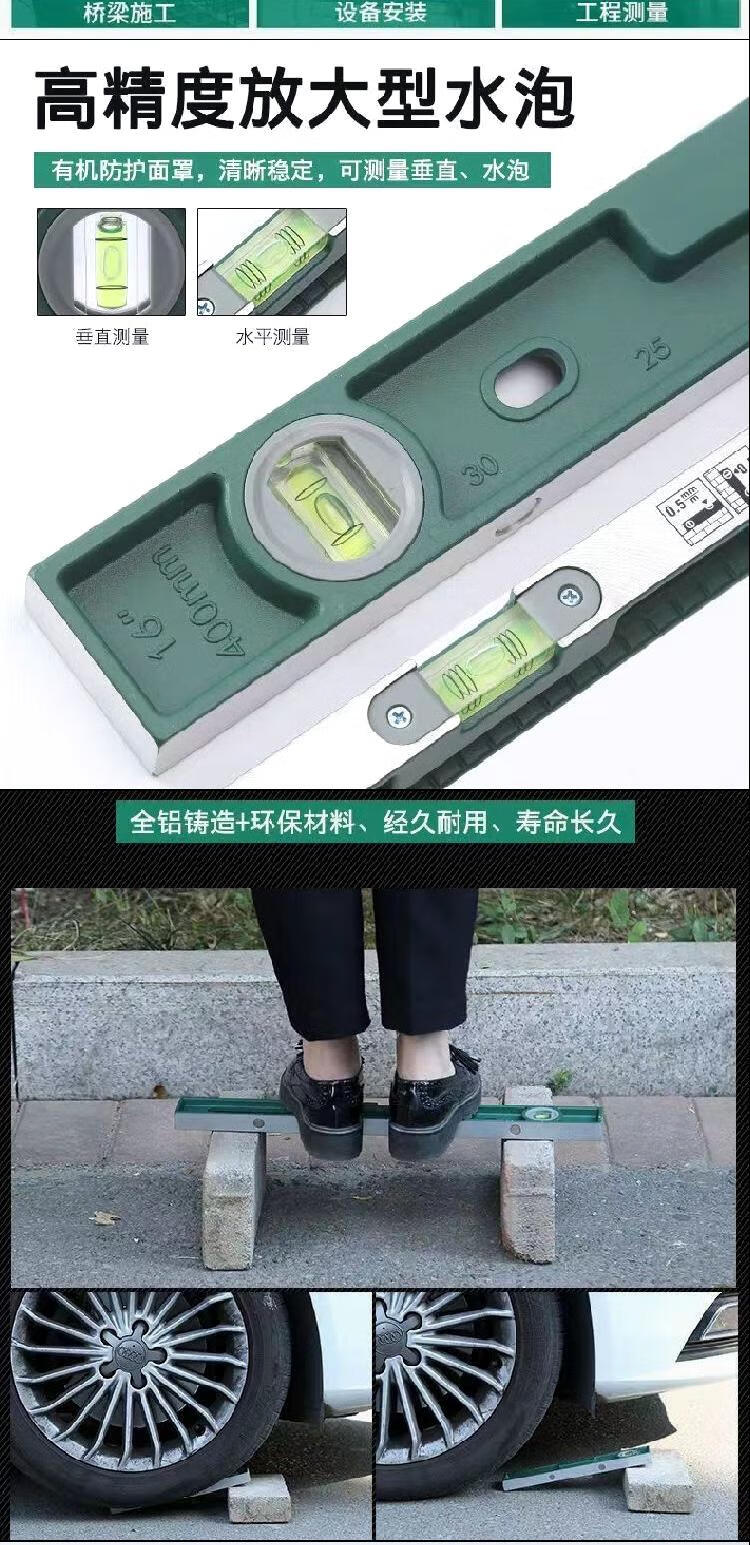 Sailoto level high-precision solid cast aluminum alloy anti-fall flat water level hanging painting tool strong magnetic balance ruler solid high-precision level 800-non-magnetic