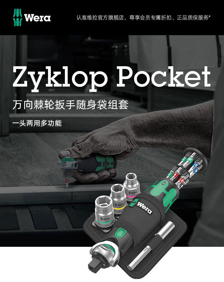 Wera Germany Wera imported ratchet wrench screwdriver set 8009 universal movable sleeve fast wrench socket bit head 18-piece set 004281