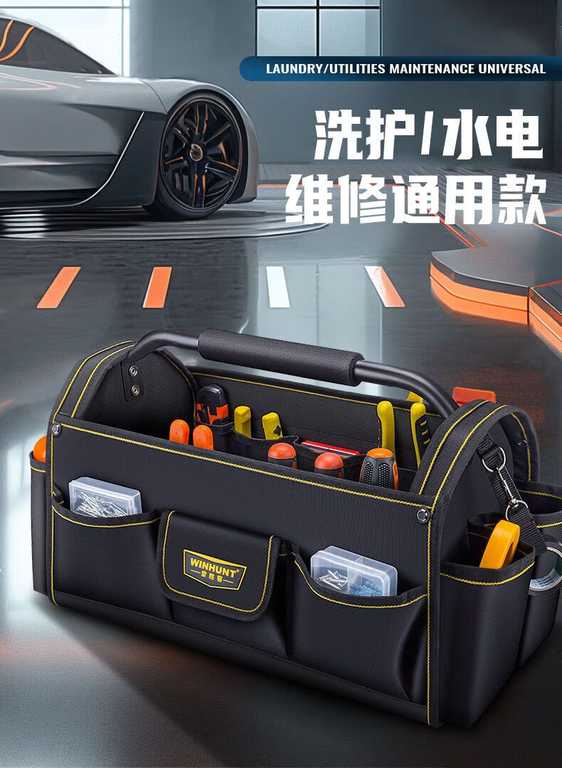 Sanqihu customized portable tool bag multi-functional tool box large capacity electrician bag men's carpentry tool bag large cleaning tool bag metal handle cloth hard