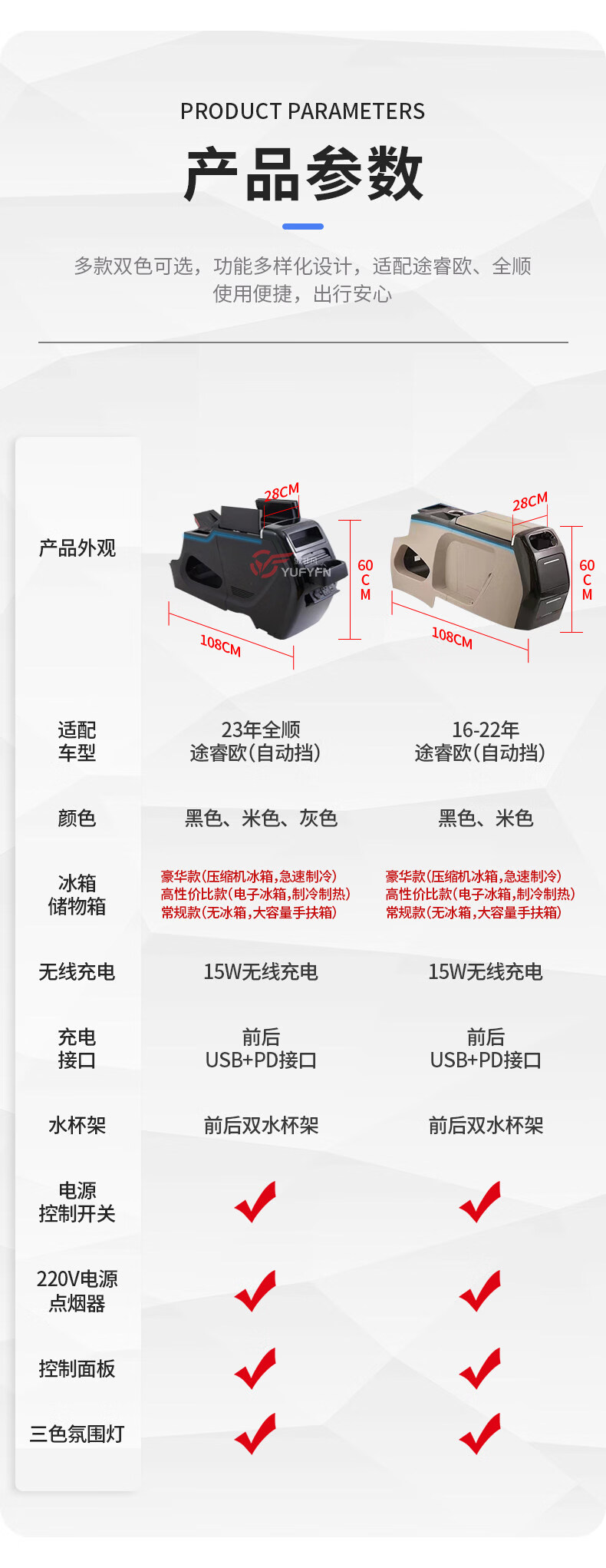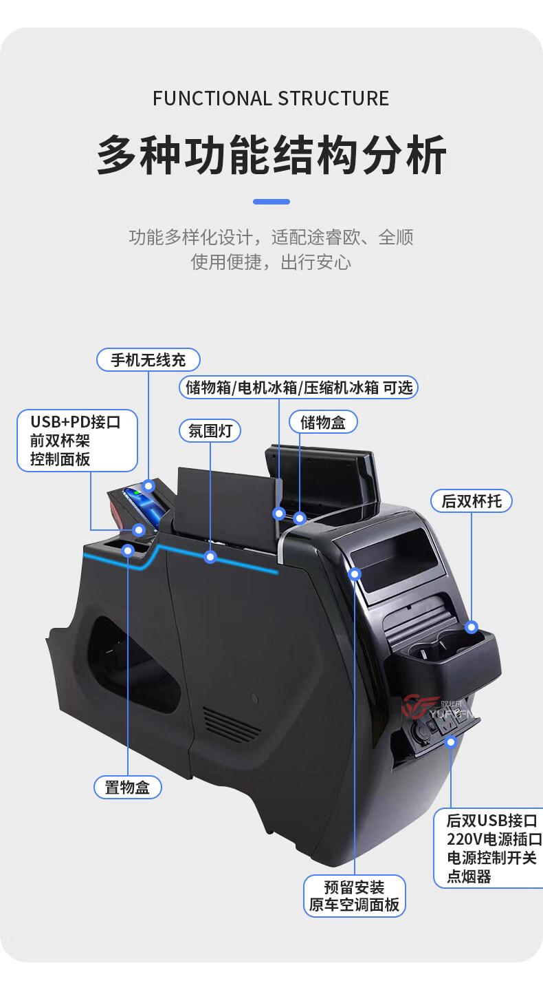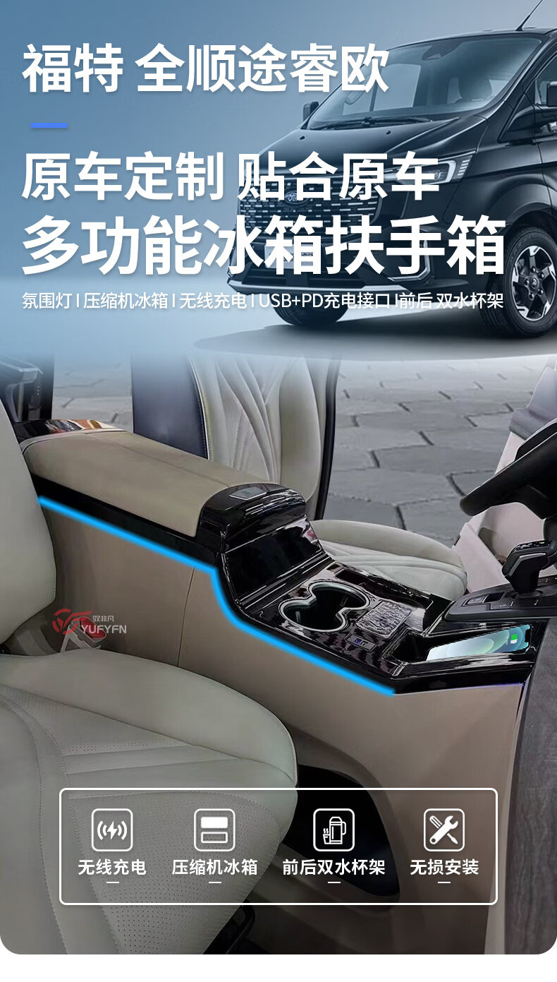 BoZi is suitable for the new Transit armrest box refrigerator modified Tourio central armrest box T6 armrest box JMC interior 23 years automatic transmission Tourio - gray - electronic refrigerator cooling and heating Ford Toureo/2023-2023