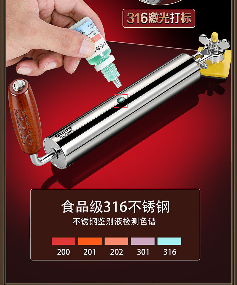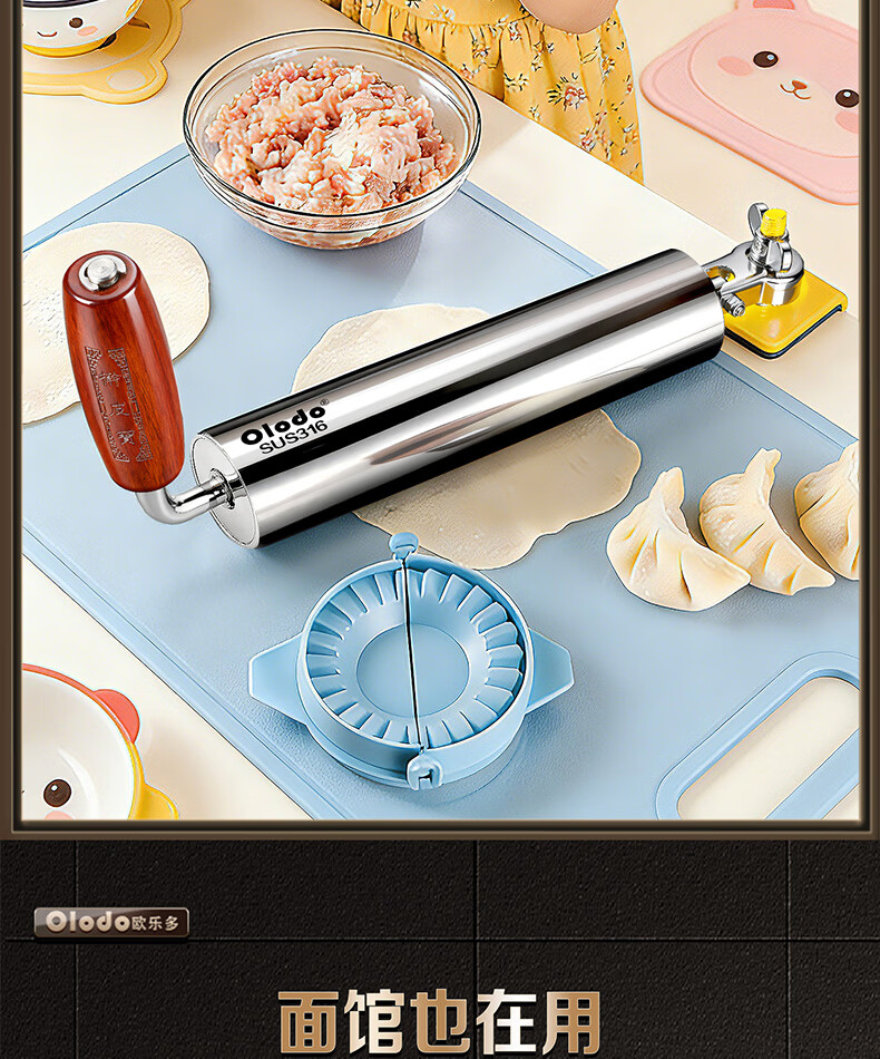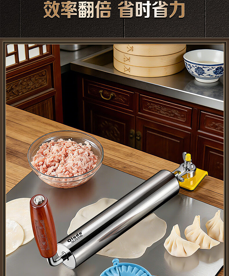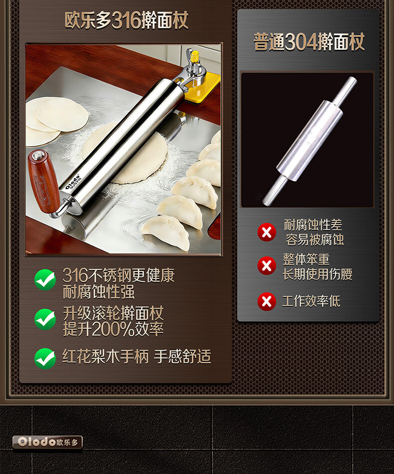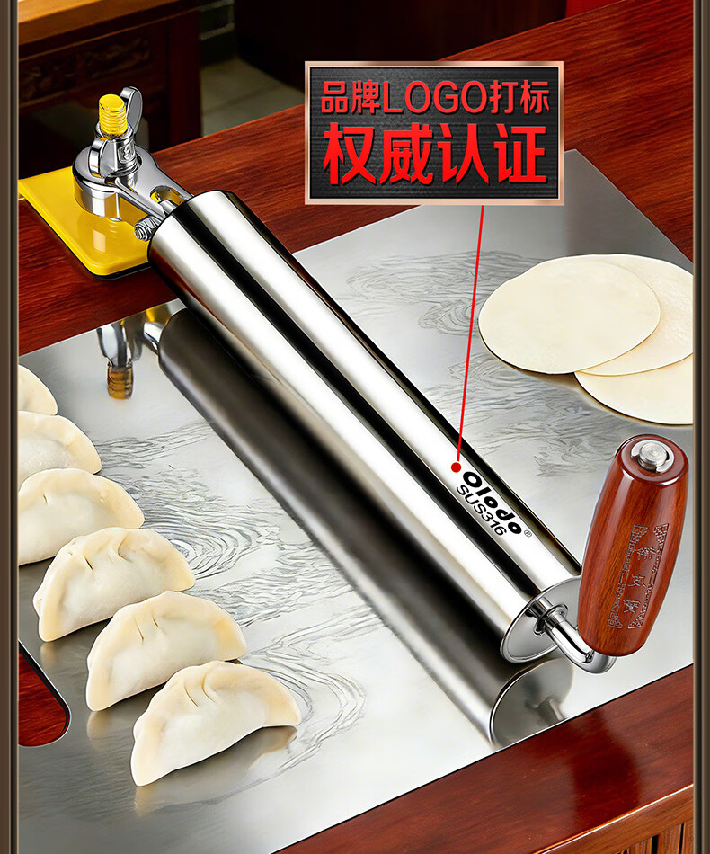 Olodo 316 stainless steel rolling pin, household food-grade dumpling making rolling pin, dumpling wrapper tool, baking rolling pin, antibacterial 316 rolling pin + red rosewood handle, small size, free three luxury gifts