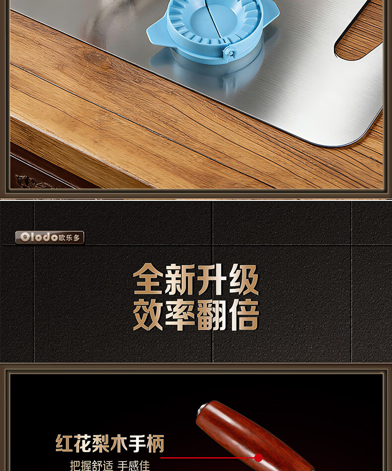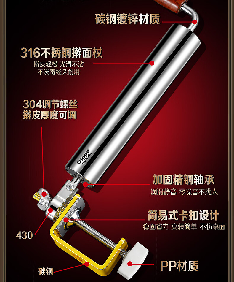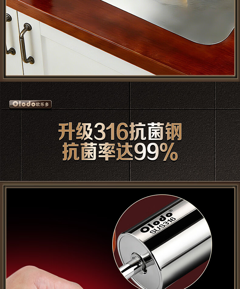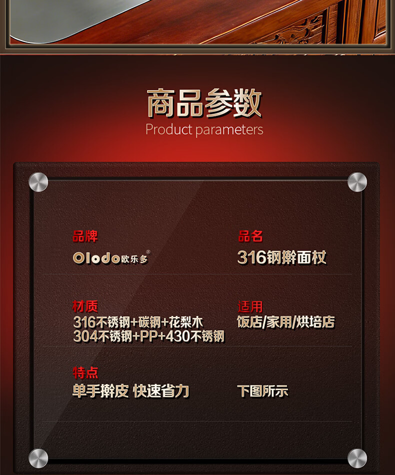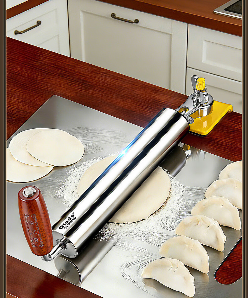 Olodo 316 stainless steel rolling pin, household food-grade dumpling making rolling pin, dumpling wrapper tool, baking rolling pin, antibacterial 316 rolling pin + red rosewood handle, small size, free three luxury gifts