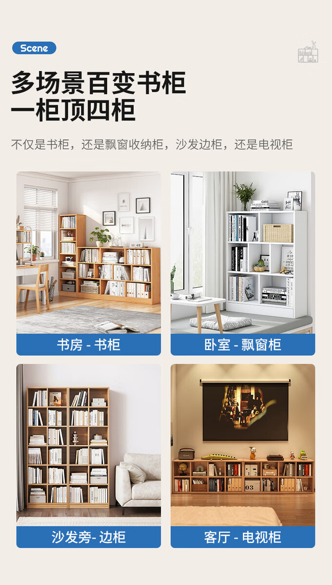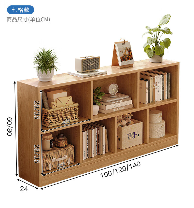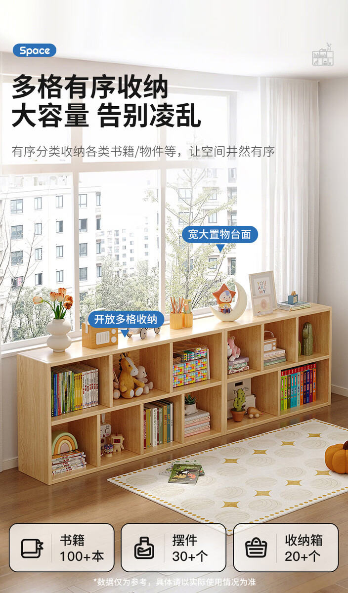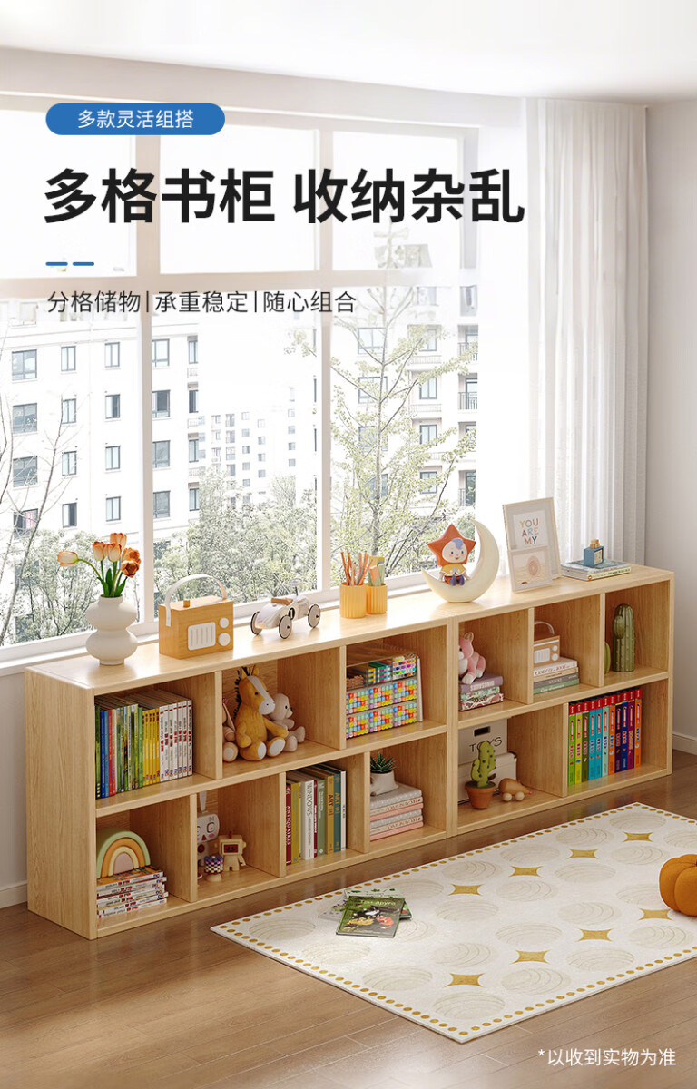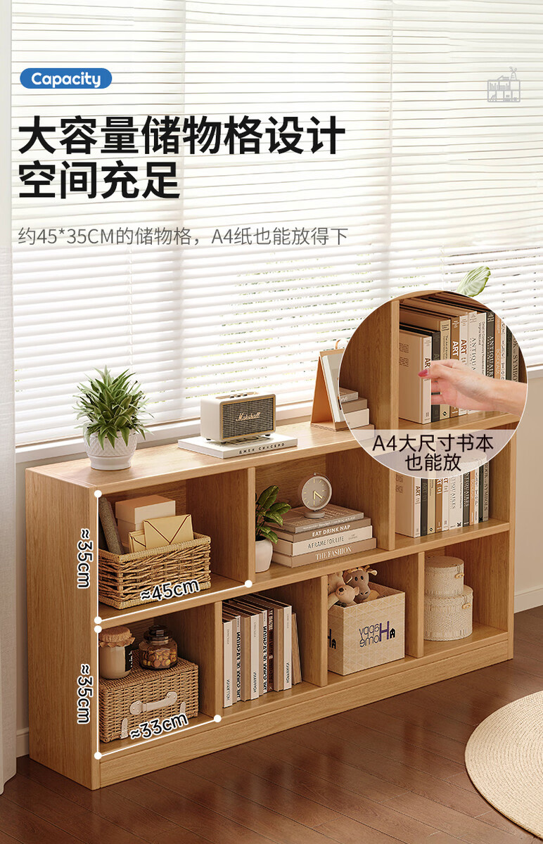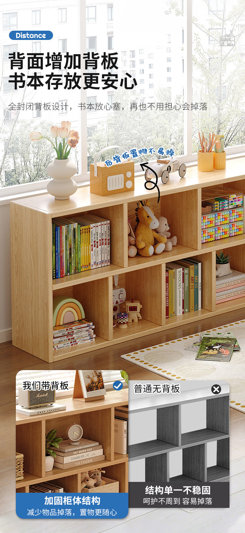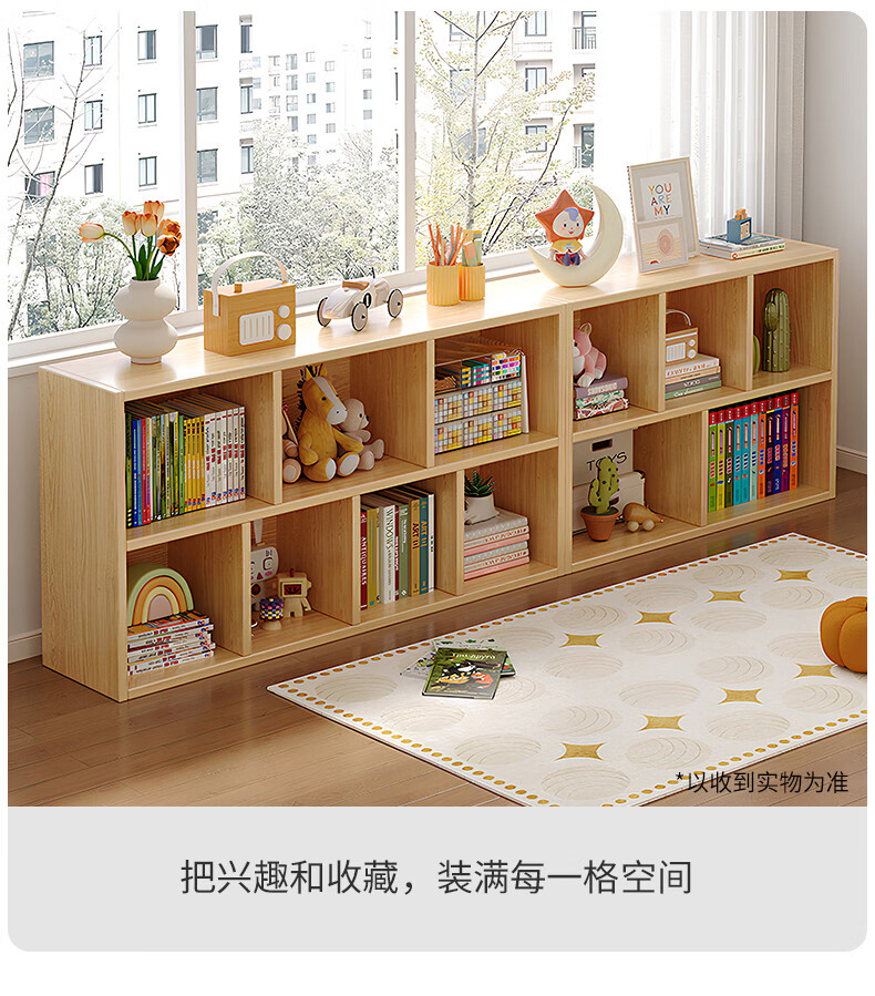 Fantasy Bookshelf Floor-standing Storage Rack Kindergarten Storage Cabinet Short Bookcase Locker Free Combination Eight-Gate Cabinet Lattice Cabinet Regular Basic Model 120x24x60cm Rain Silk Silver Oak Color
