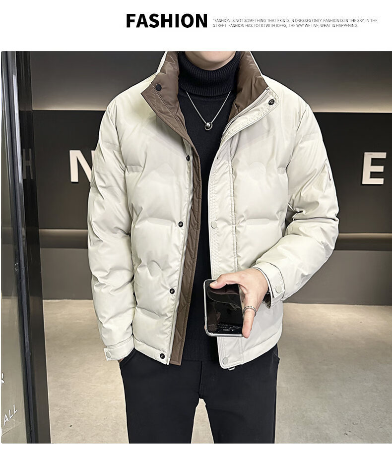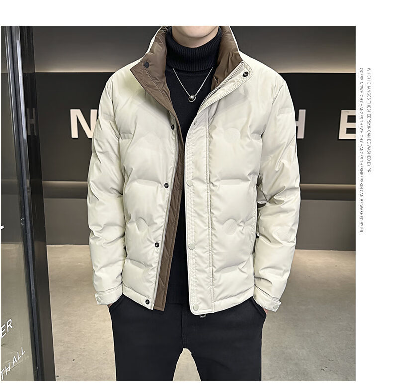 Snow Flying (SNOWFLYING) Lightweight Down Jacket Men's Winter 2025 New High-end Coldproof Handsome Short Trendy Warm Thickened Men's Jacket Beige XL Men's New 2025 Recommended 140-160 Jin Jin is equal to 0.5 kg