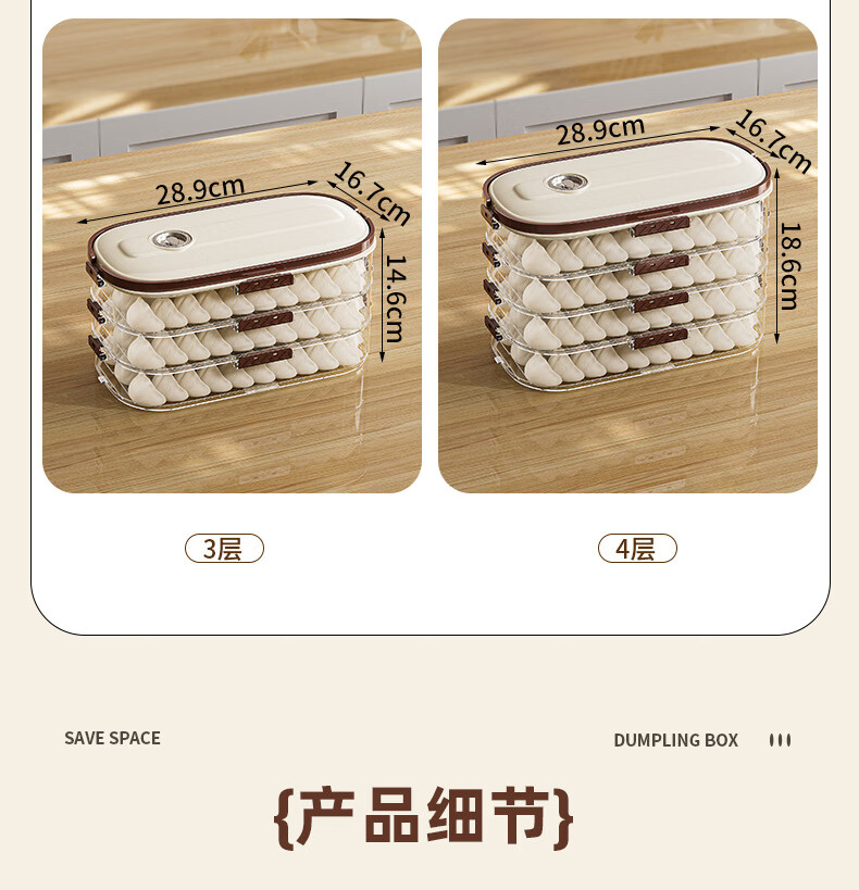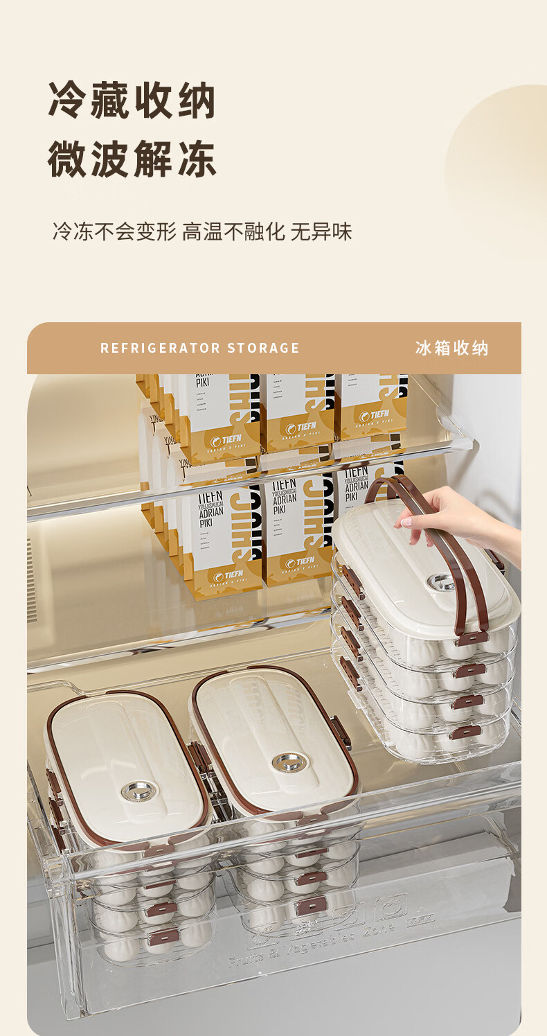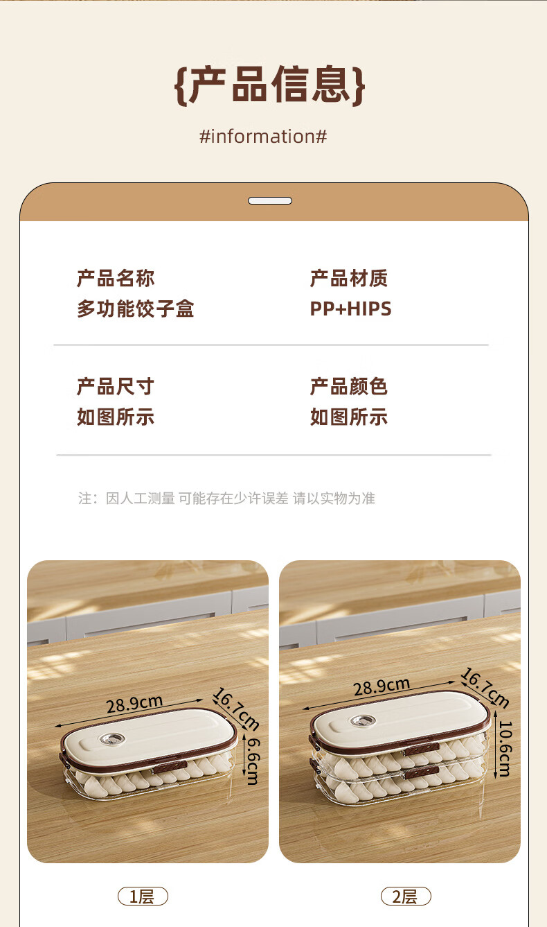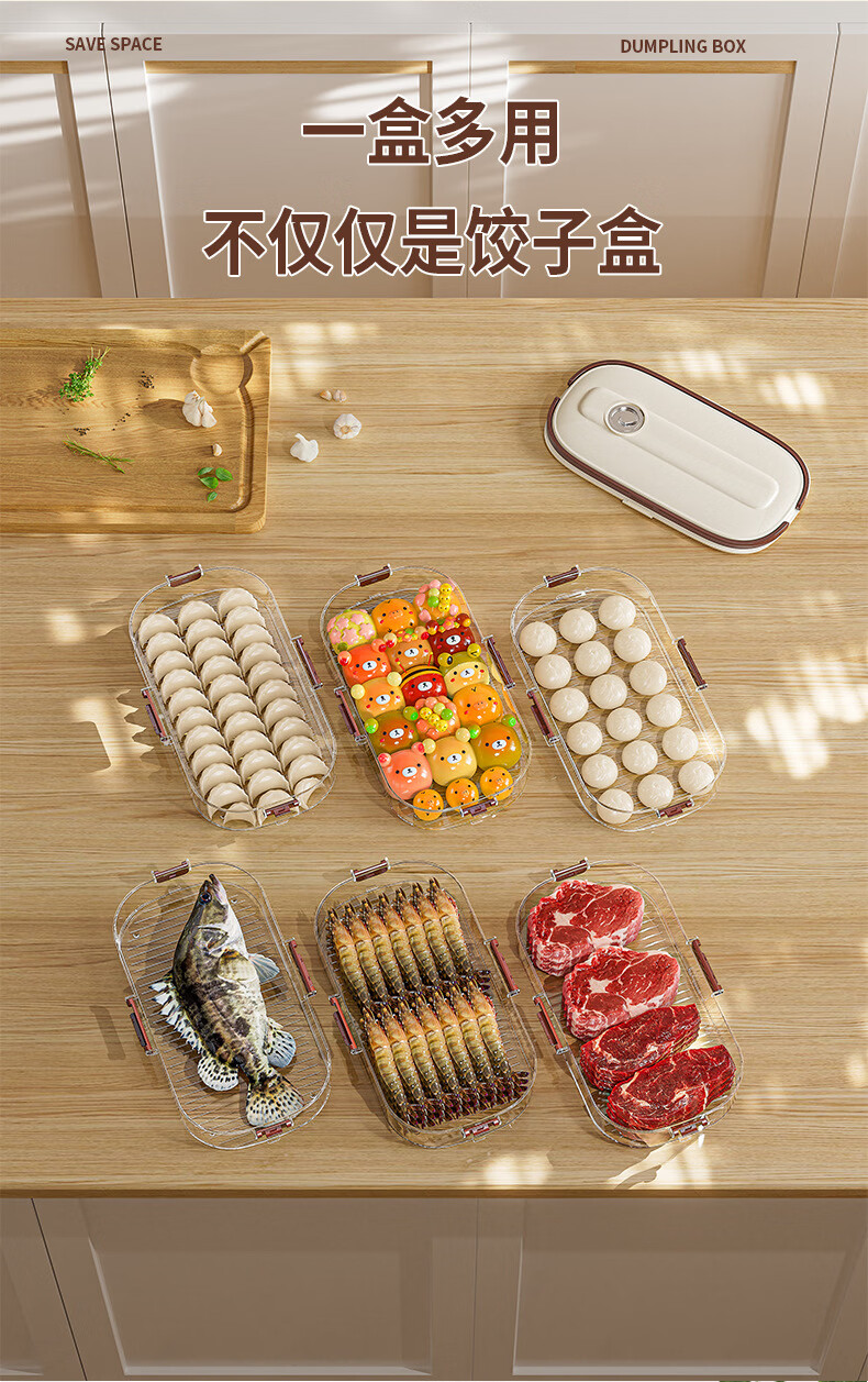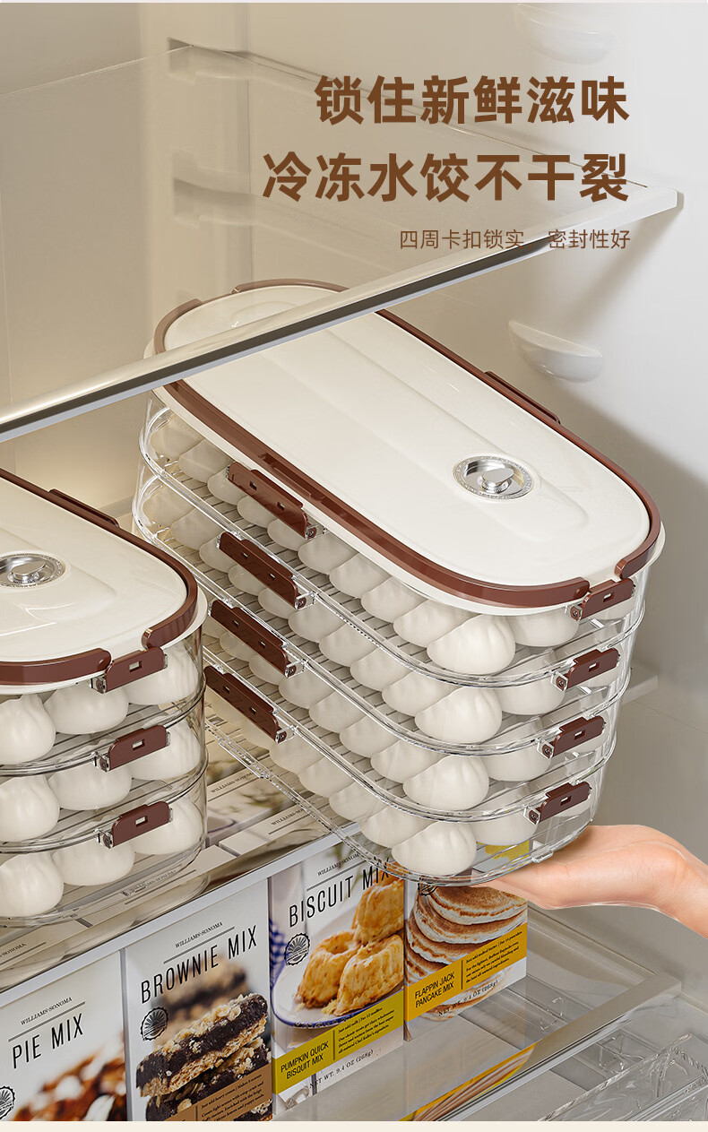 Riheshengtang narrow slit dumpling box food kitchen refrigerator side door dumpling wonton box fresh-keeping quick-frozen frozen household storage box 1 piece 1 layer 1 cover 29x17x7cm