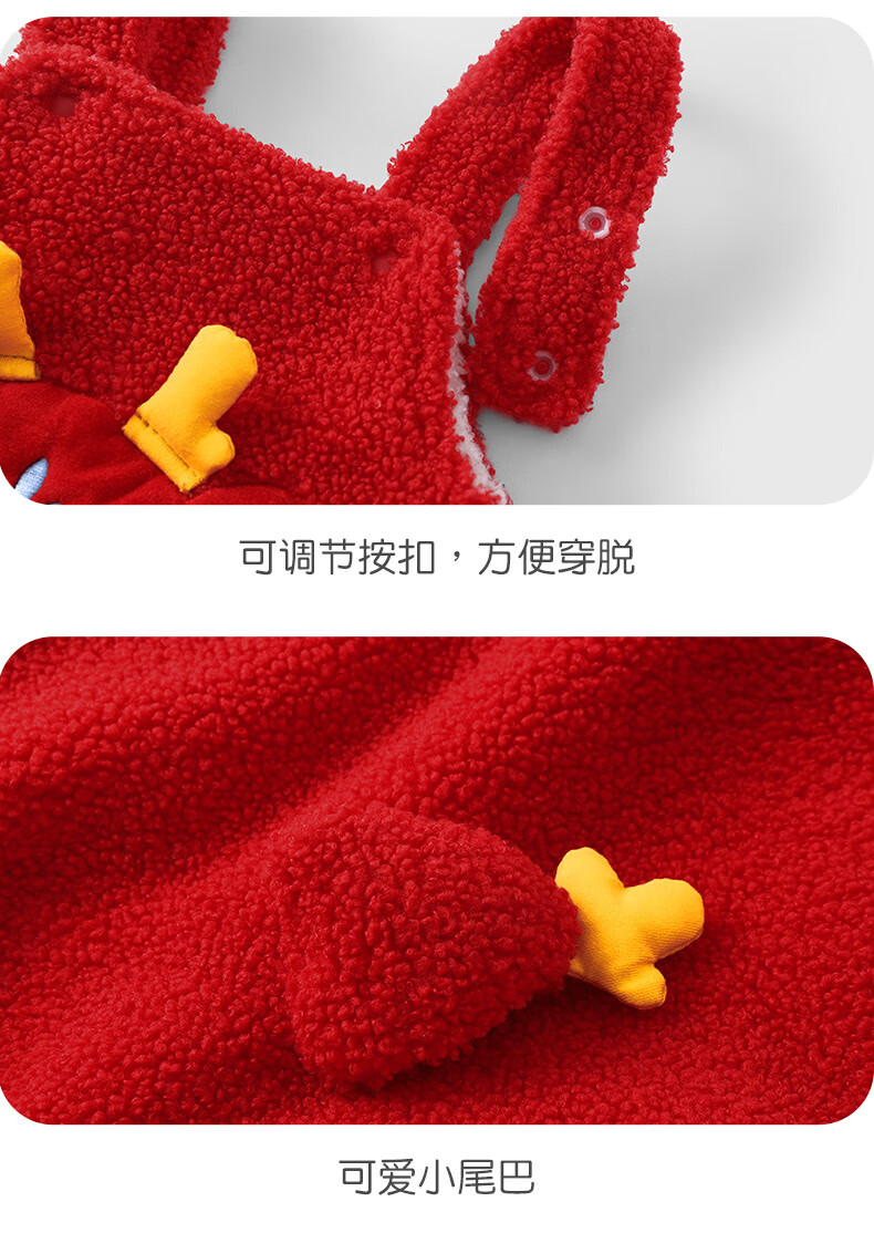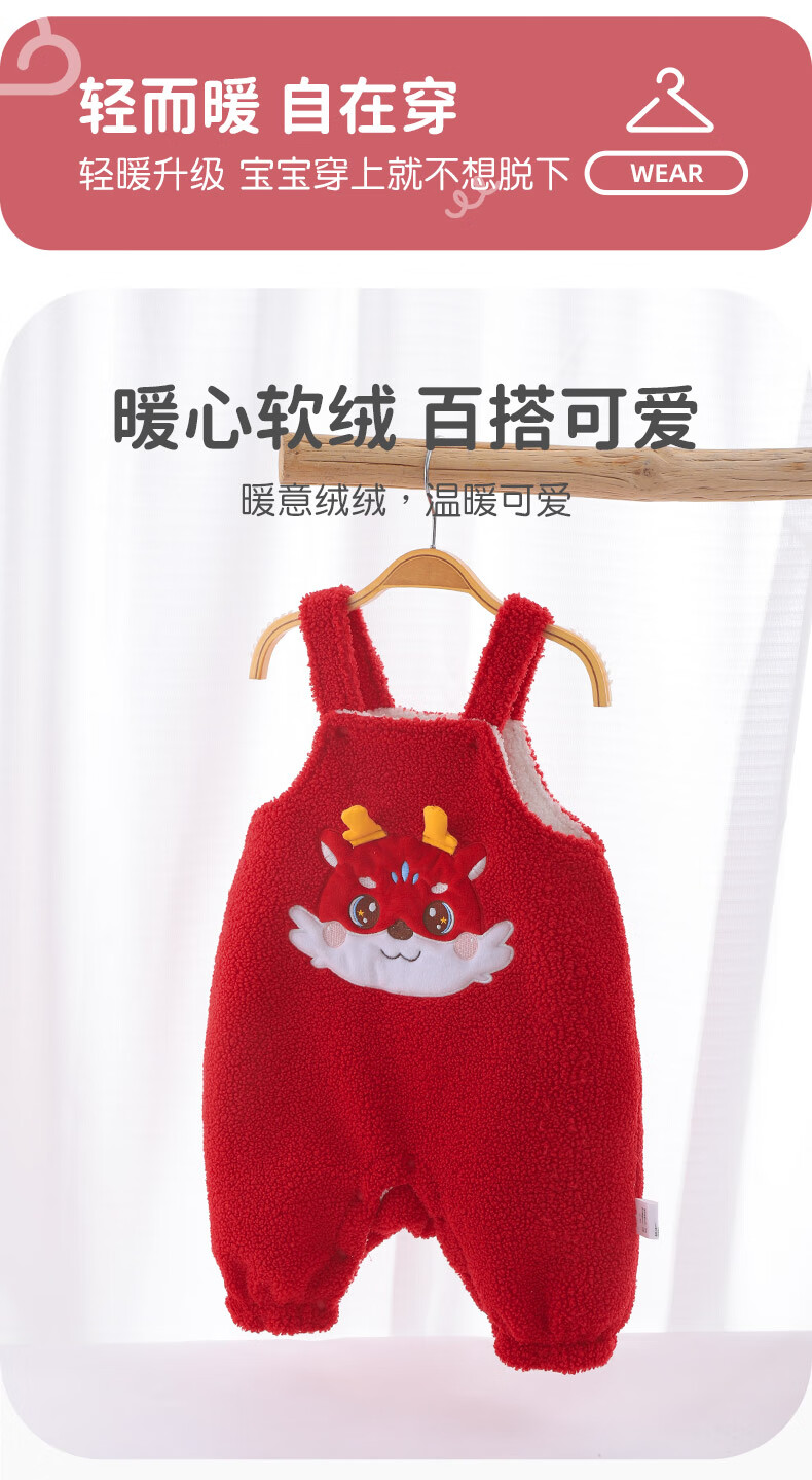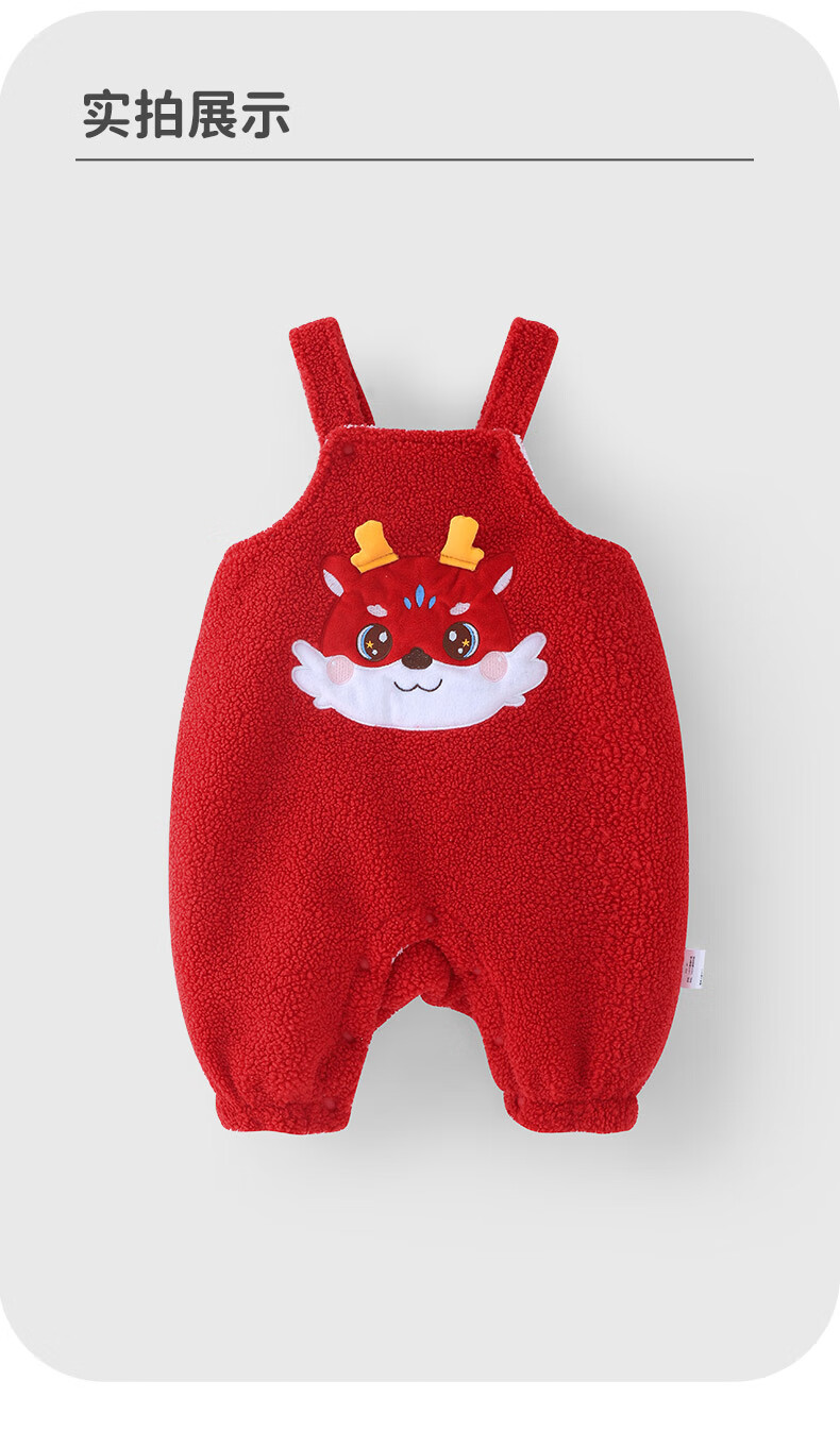 Youqi baby clothes autumn and winter onesies toddlers winter red cartoon plus velvet overalls cute pants New Year's greetings clothes red overalls without accessories 66