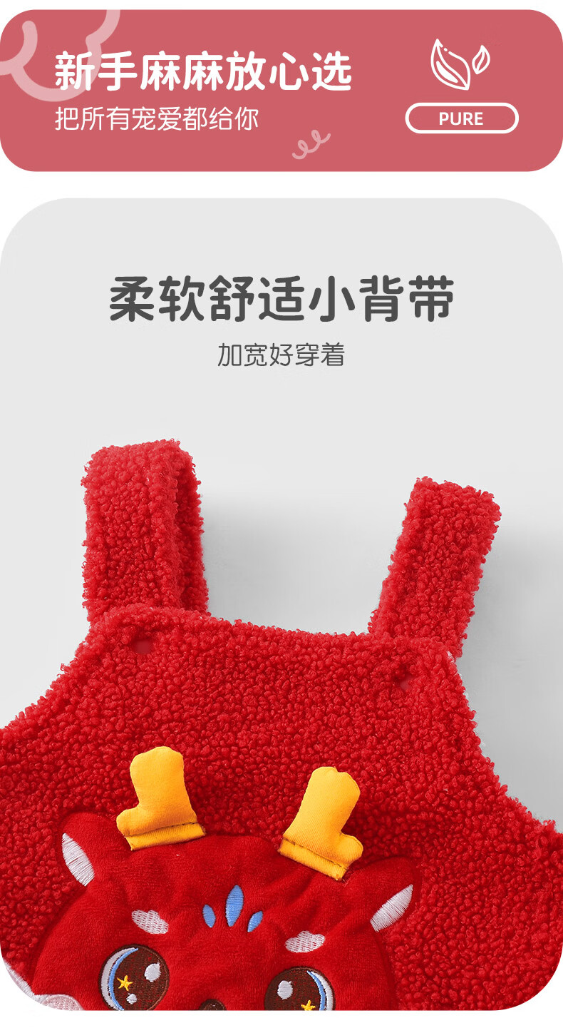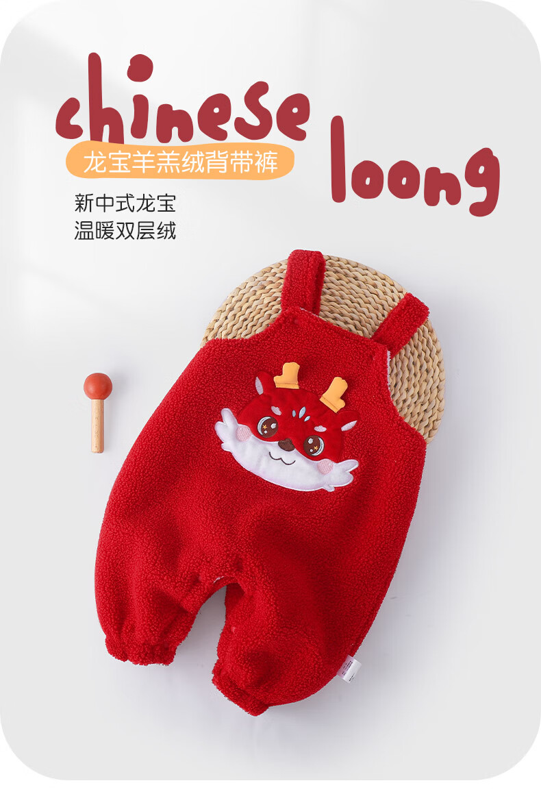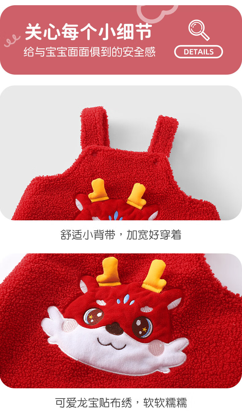 Youqi baby clothes autumn and winter onesies toddlers winter red cartoon plus velvet overalls cute pants New Year's greetings clothes red overalls without accessories 66