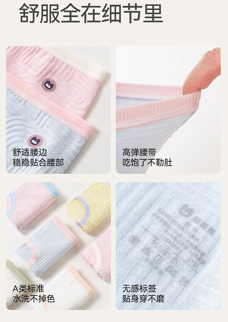 Mianqi Xiong Little Sea Blue Pure Cotton Pants Seaweed Girls Underwear Pure Cotton Class A Girls Pure Cotton Development Briefs for Junior High School Students Childish Dream Geometry Series A-3 Pack (Natural Seaweed Conservation) 60S Xinjiang Long Staple Cotton 155 - Recommended Weight 50-65Jin Jin is equal to 0.5 kg