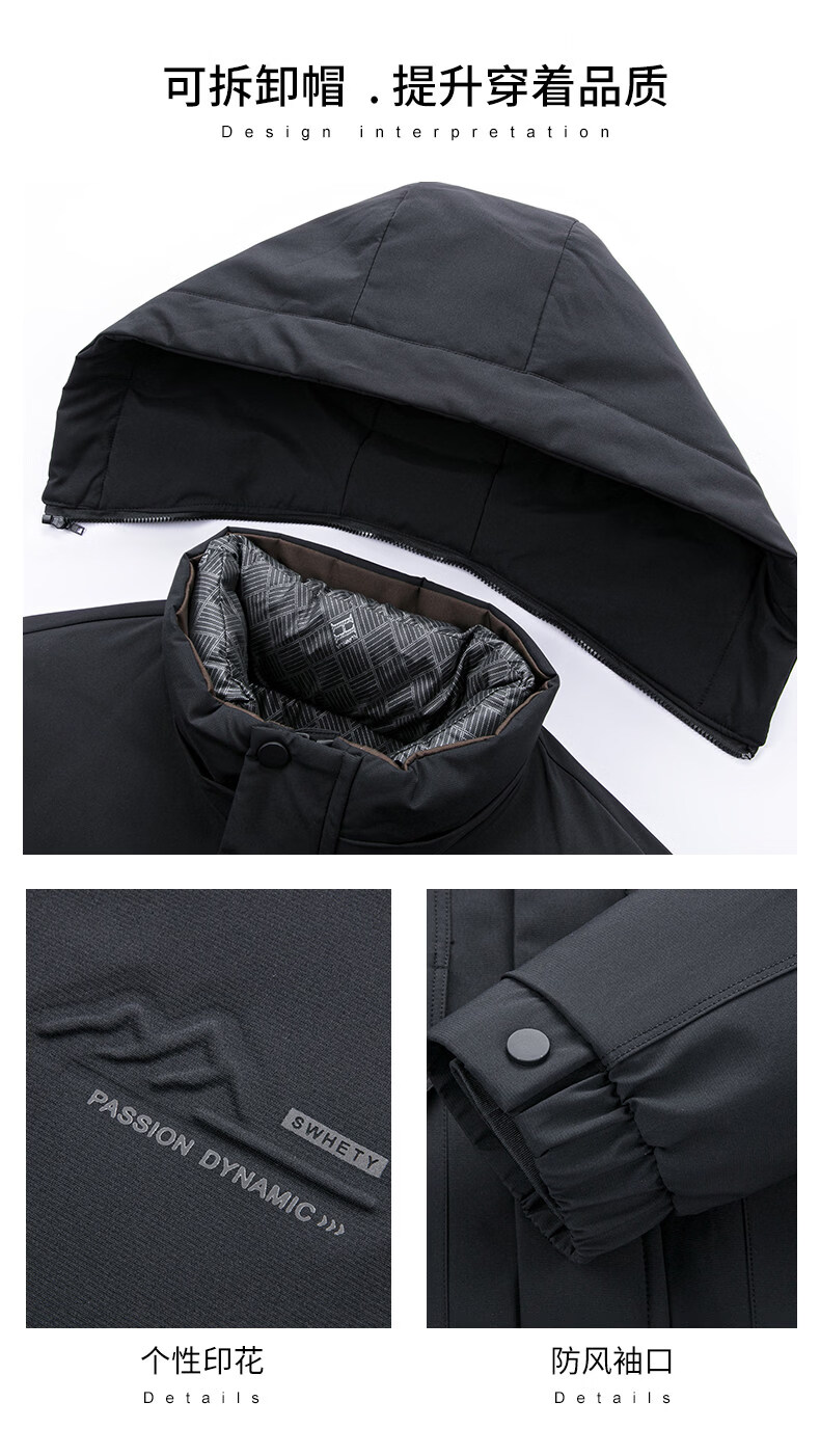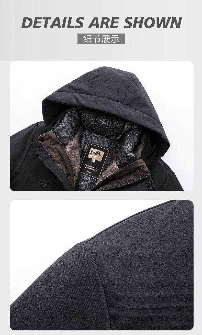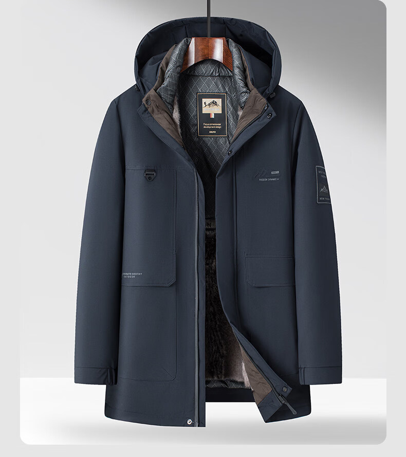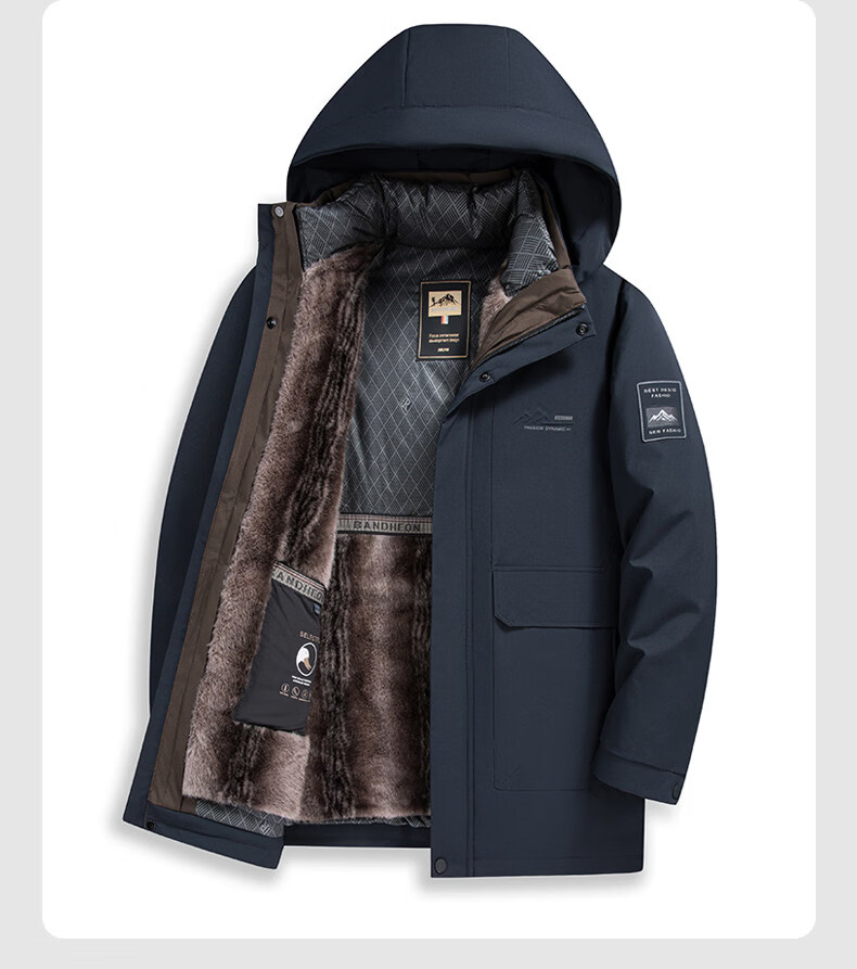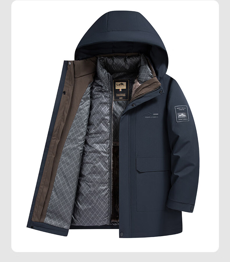Hengyuanxiang Light Luxury High-end White Duck Down Jacket Men's Mid-Length Winter New Style Dad Thickened Hooded Warm Plush Jacket Navy Blue L Recommended 100-120 Jin Jin is equal to 0.5 kg. Get it and earn money