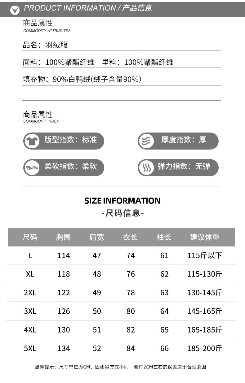 China (cm) 165 / 88-90 170 / 96-98 175 / 108-110 180 / 118-122 185 / 126-130