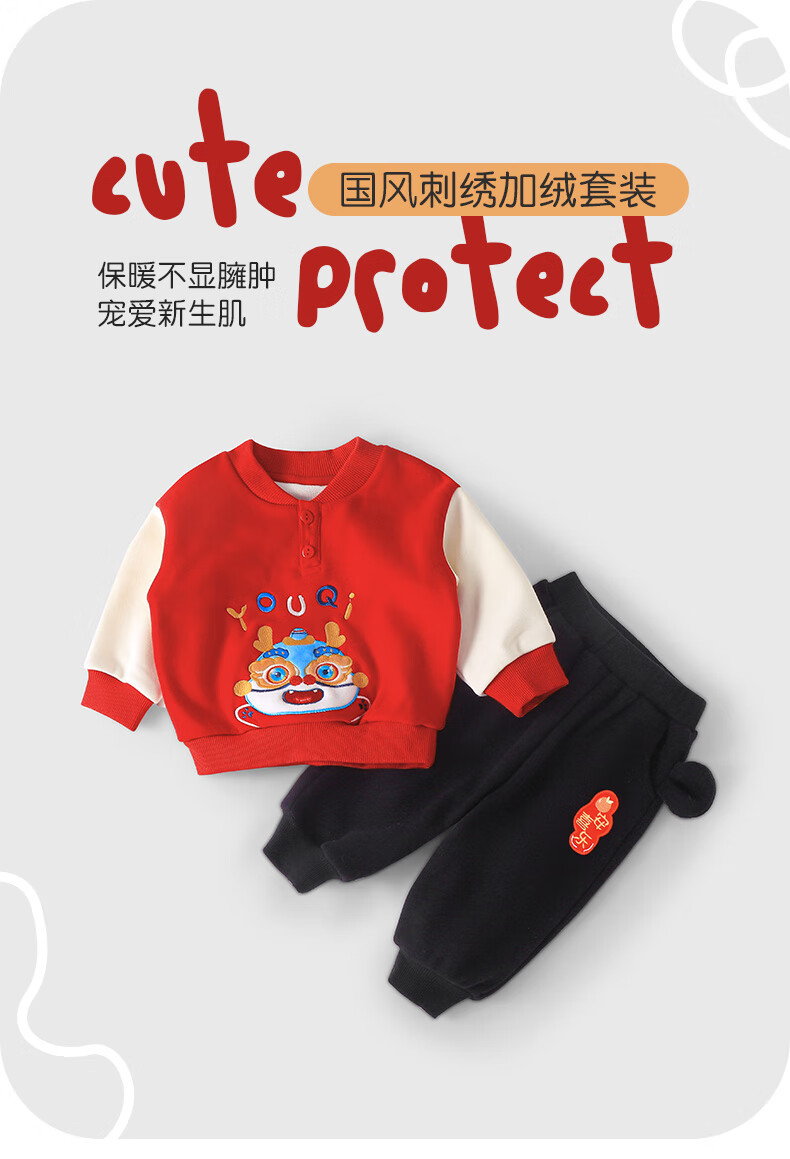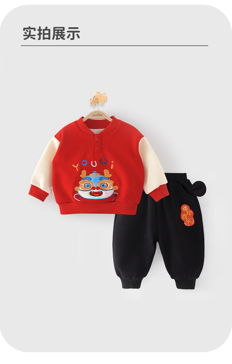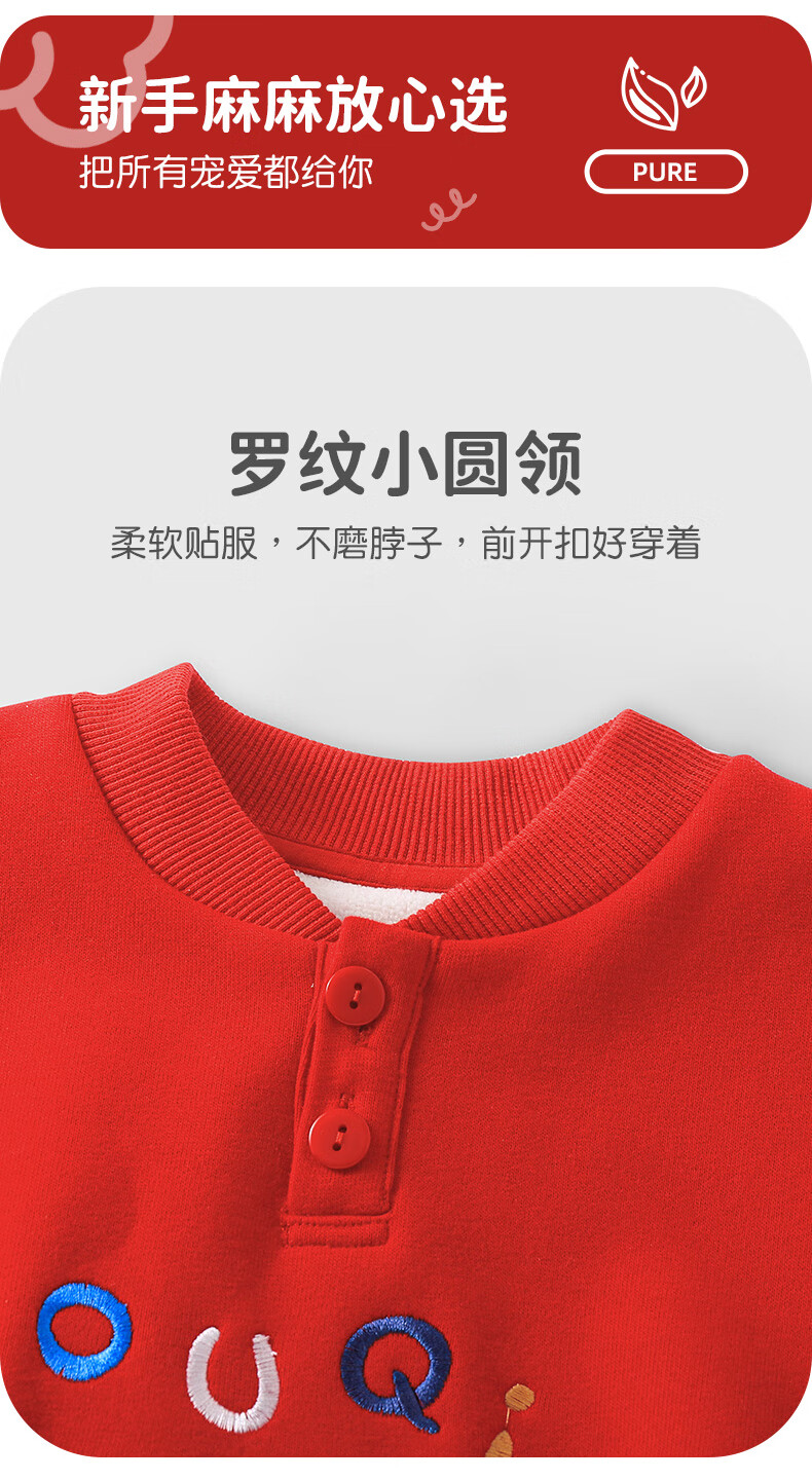 Youqi baby New Year's greeting clothes children's New Year velvet sweatshirt winter clothing autumn and winter boys and girls baby all-in-one velvet New Year's clothing red 80