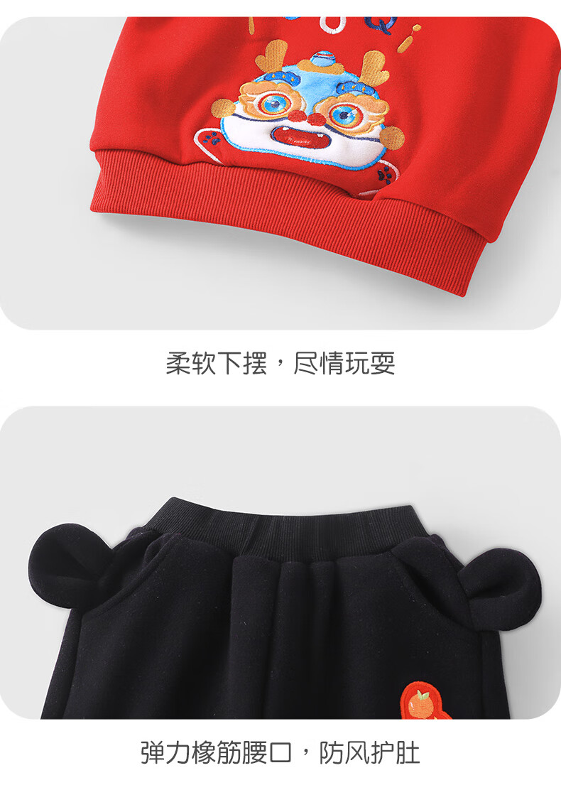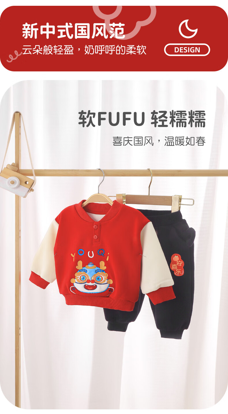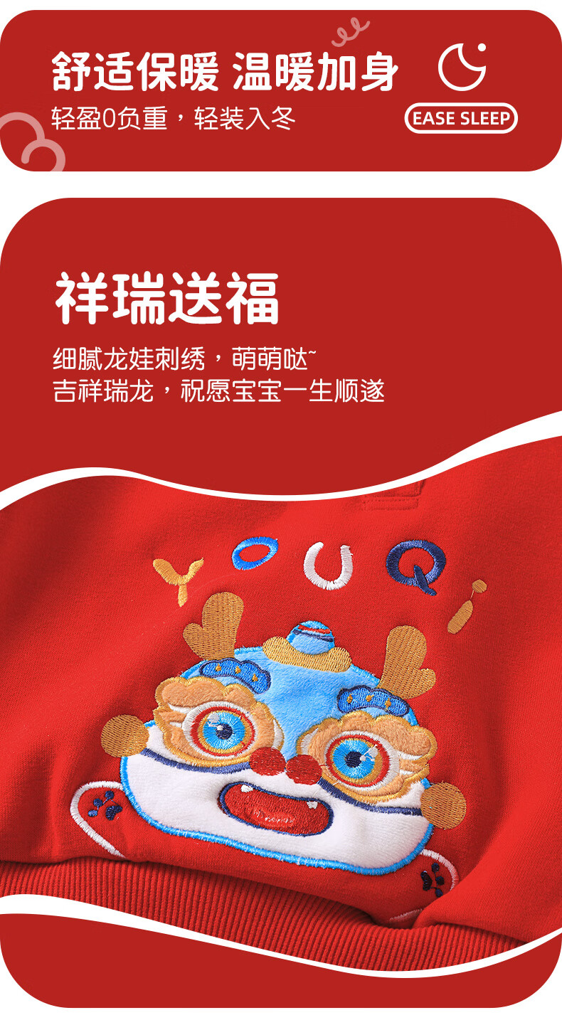 Youqi baby New Year's greeting clothes children's New Year velvet sweatshirt winter clothing autumn and winter boys and girls baby all-in-one velvet New Year's clothing red 80