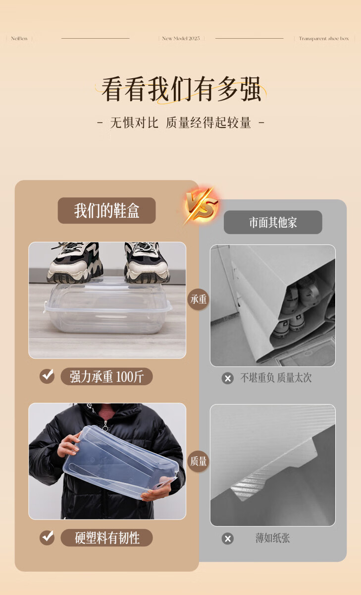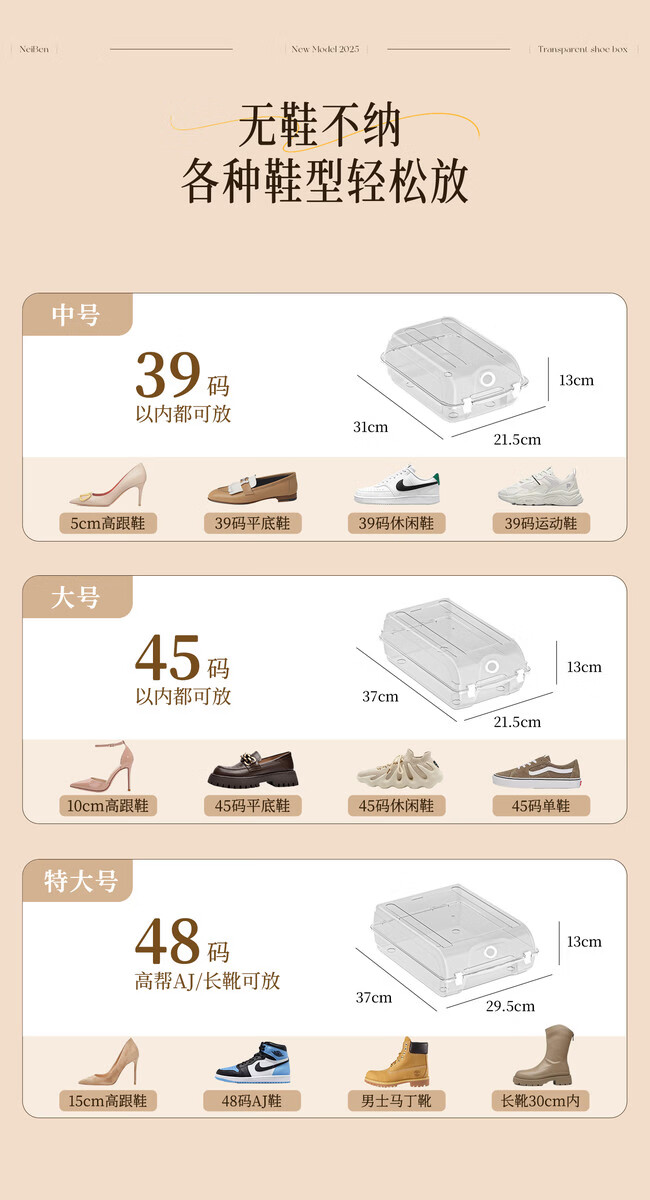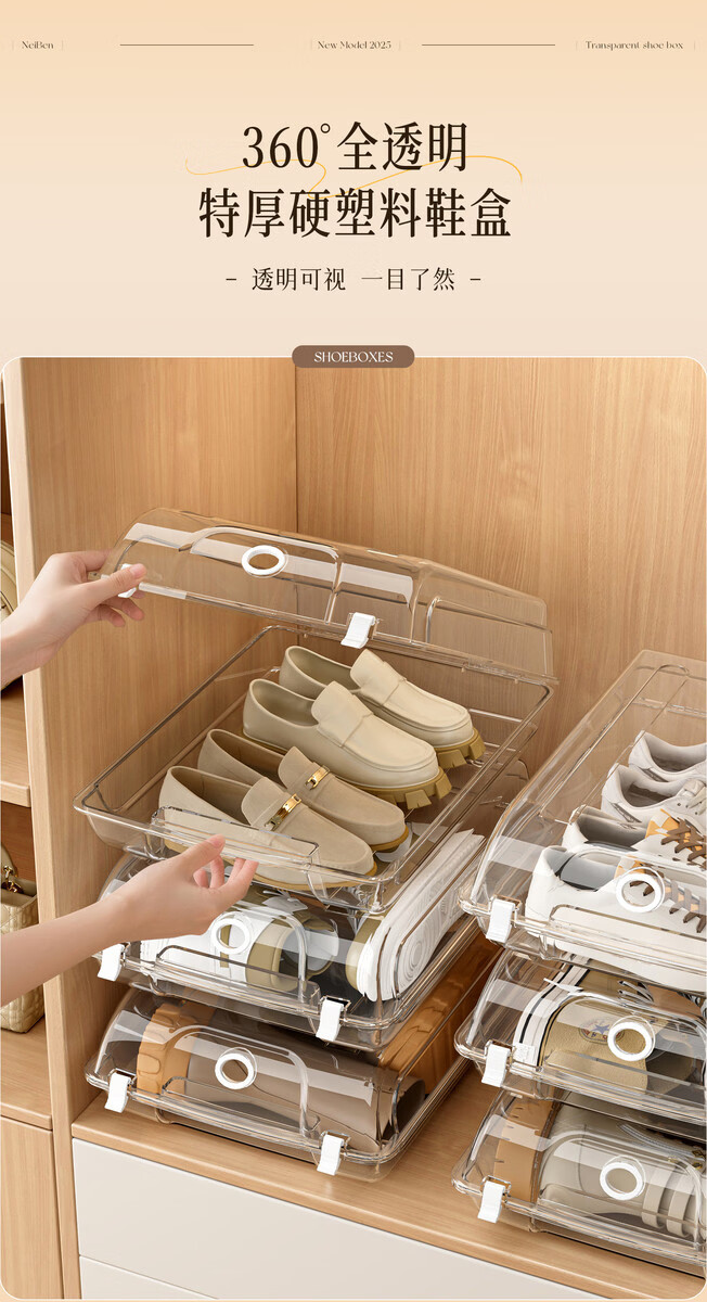 Yusenyi Boots Storage Shoe Box Space-saving Large Capacity Shoe Storage Box Transparent Shoe Cabinet Plastic Ivory White 4 Boots/High-Top Shoes 45 Can Be Put