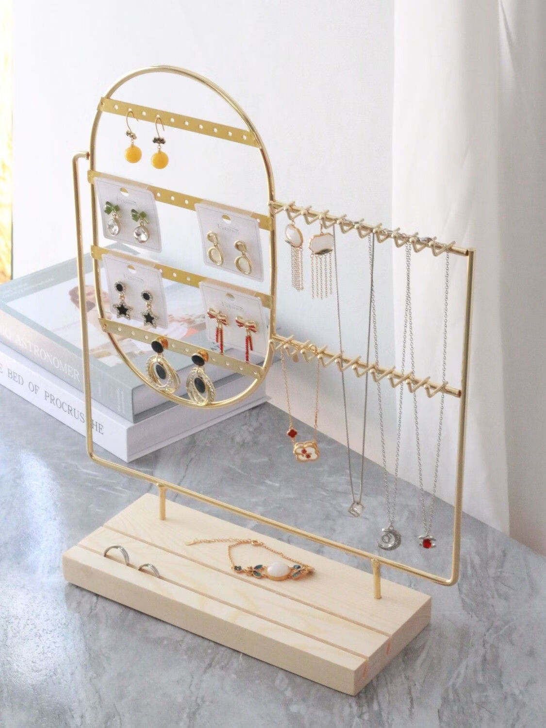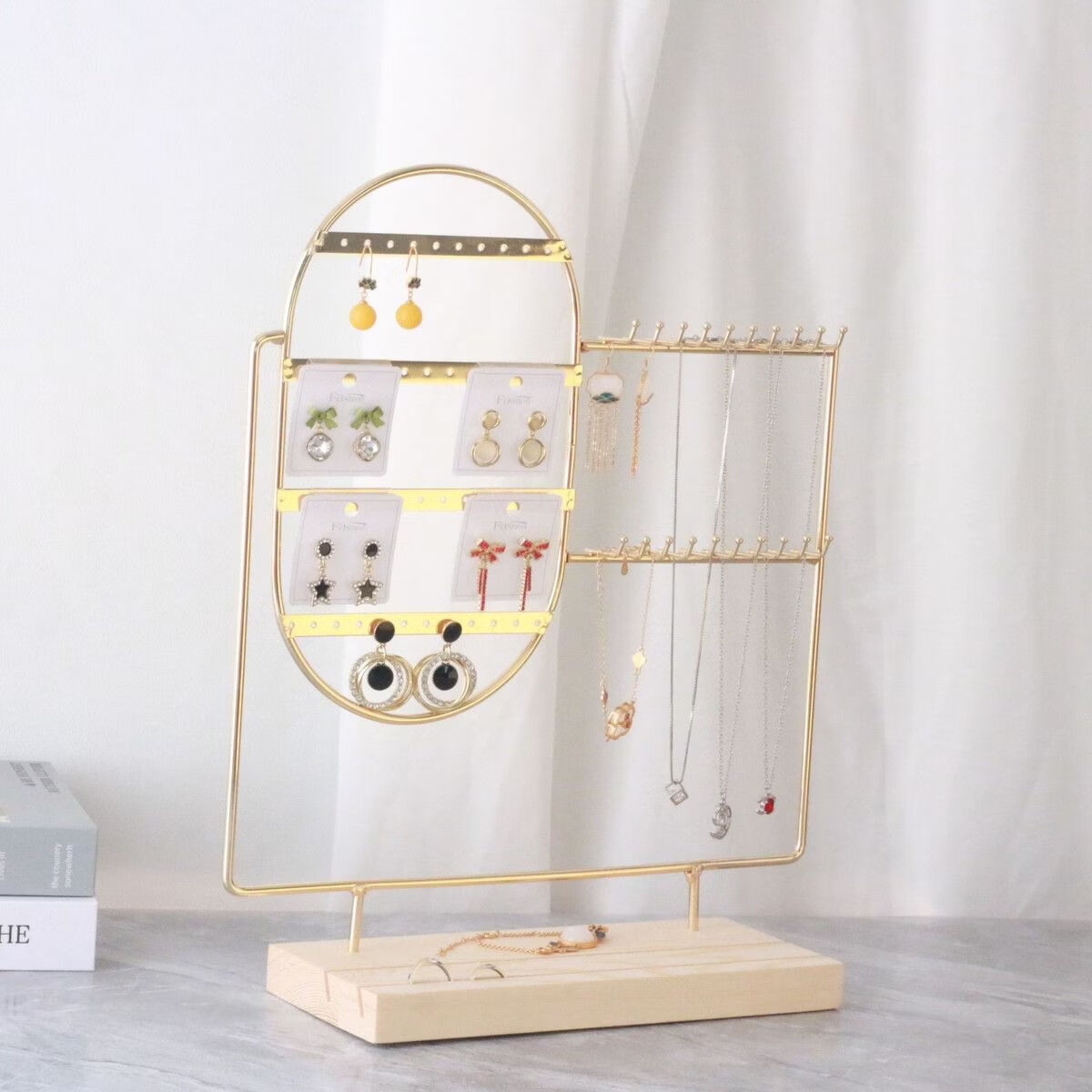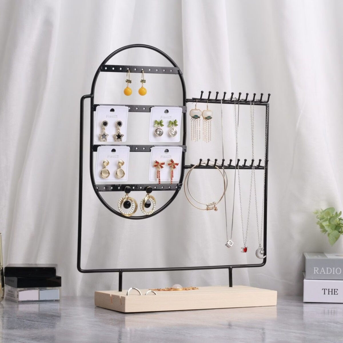 Fantasy simple jewelry storage rack makeup table metal bracelet necklace display rack 4-layer earring jewelry rack desktop entrance hall oval square black