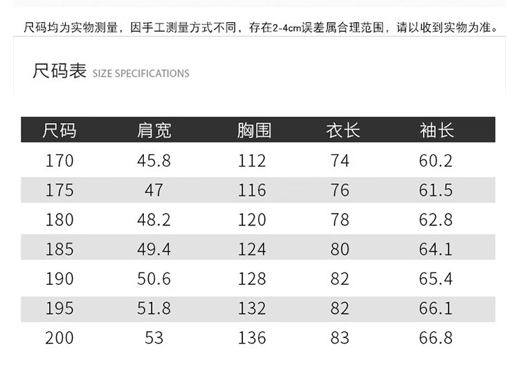 China (cm) 165 / 88-90 170 / 96-98 175 / 108-110 180 / 118-122 185 / 126-130