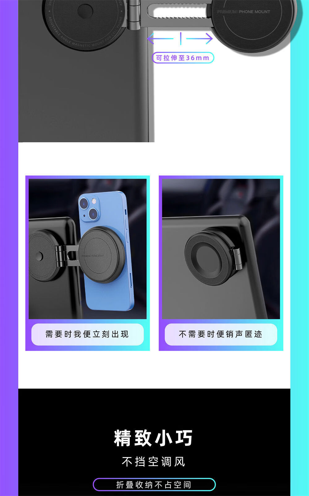 Litian mobile phone holder ModelY central control screen rear magnetic suction refresh 3 foldable 360-degree rotation anti-shake white model magnetic suction mobile phone holder