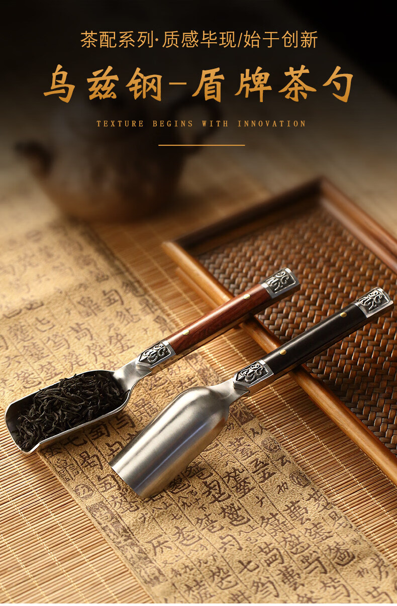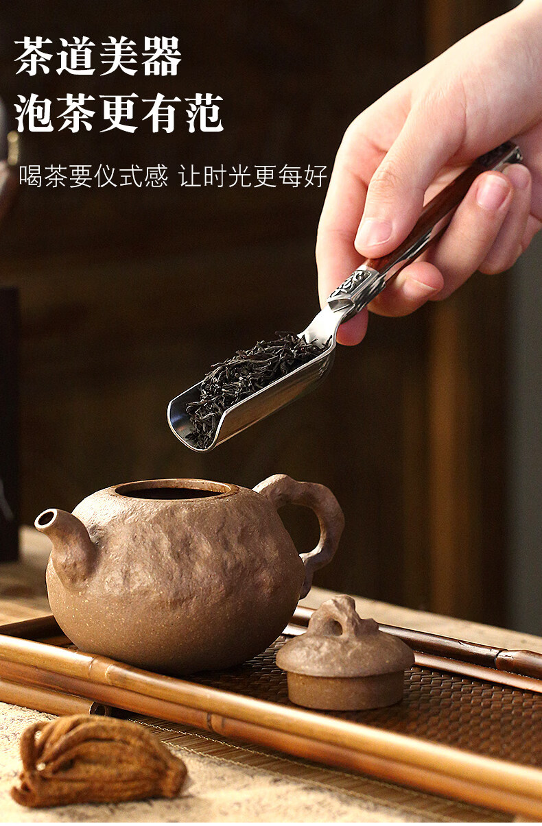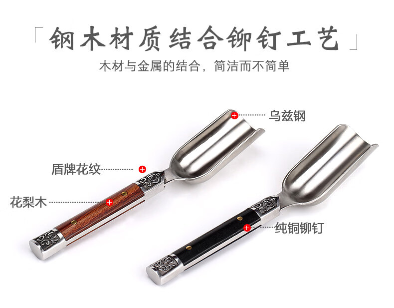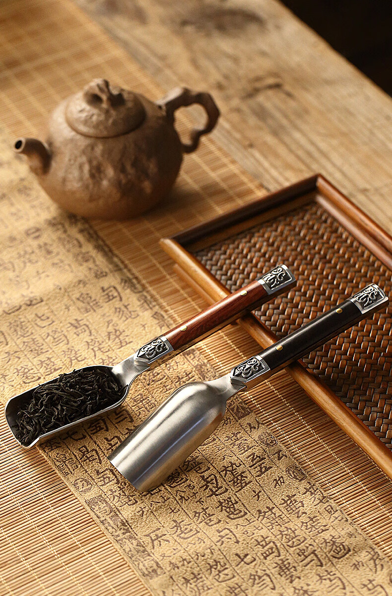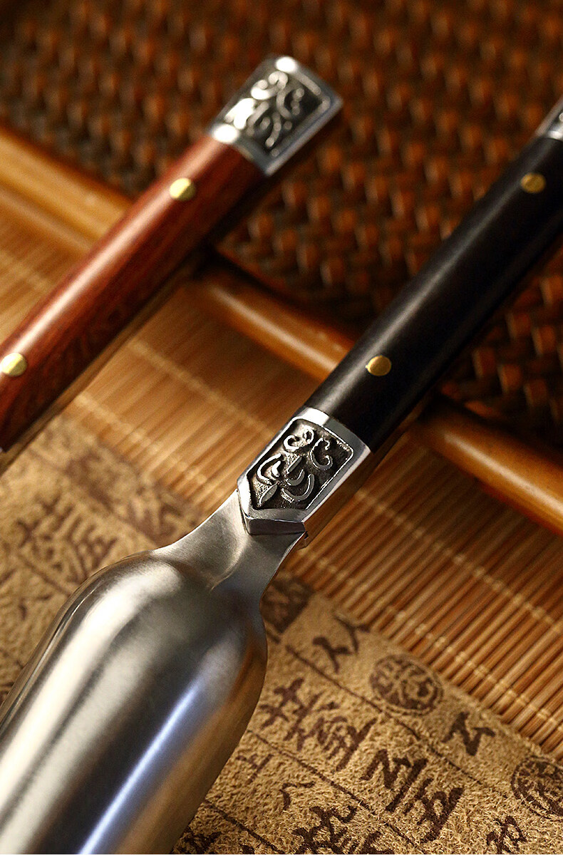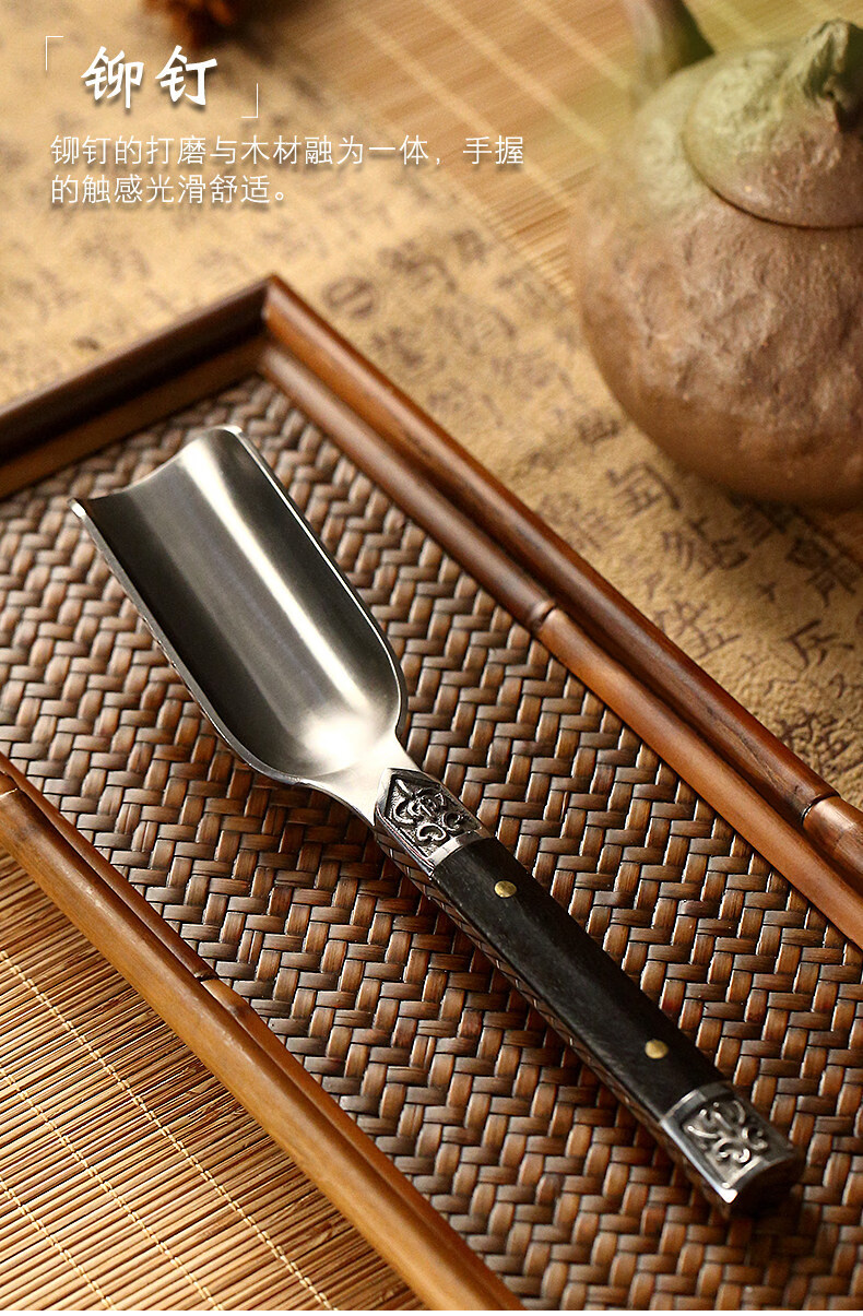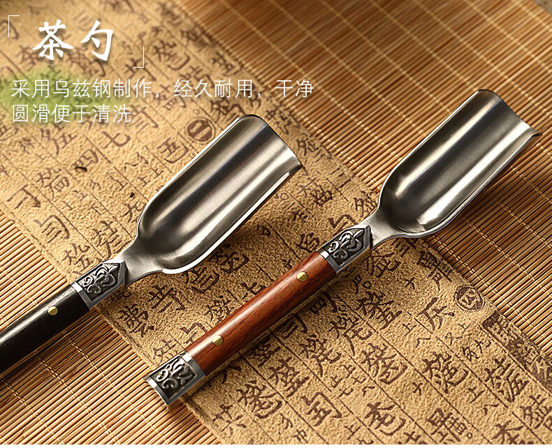 He Jiagong ebony solid wood Utz steel tea spoon tea spoon tea spoon tea divider Kung Fu tea set tea ceremony accessories new rosewood Utz steel tea spoon