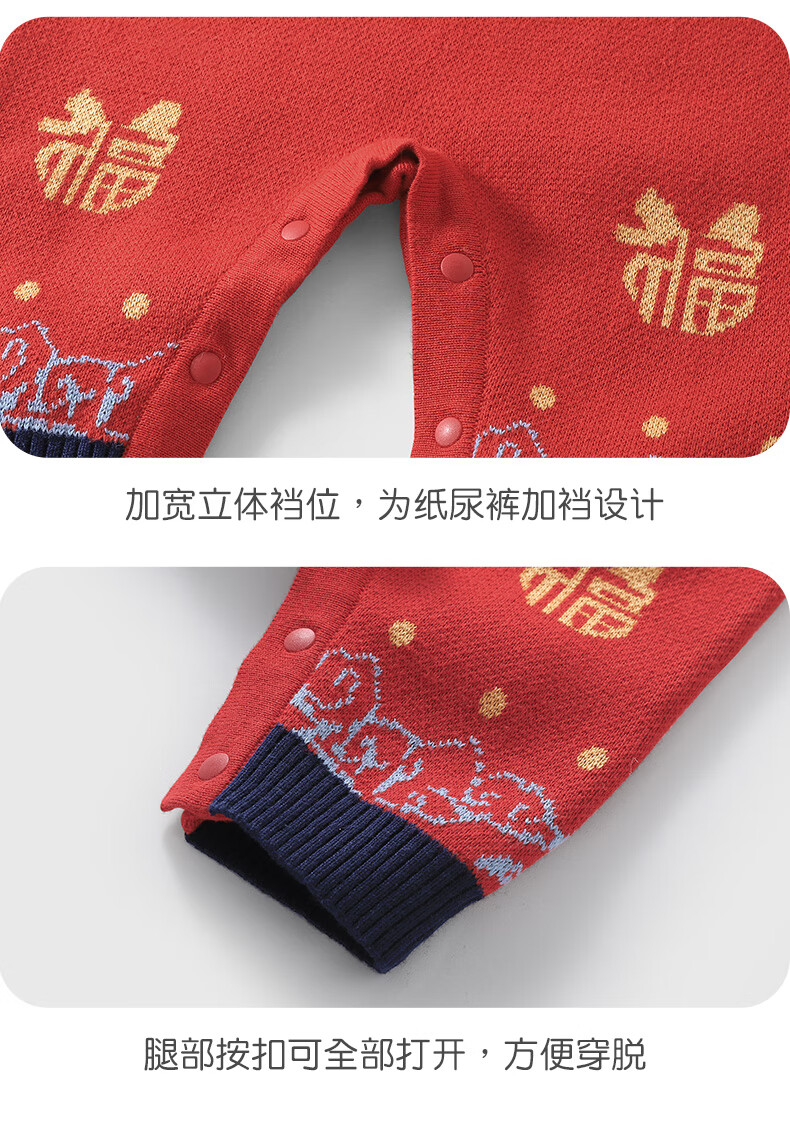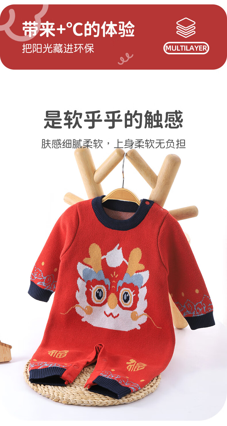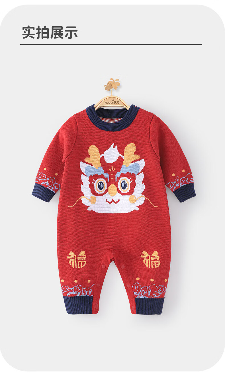 Youqi baby clothes, autumn and winter clothes, newborn onesies, thick ones, male and female babies, one hundred days old, one-month-old dress, going out, red 66cm