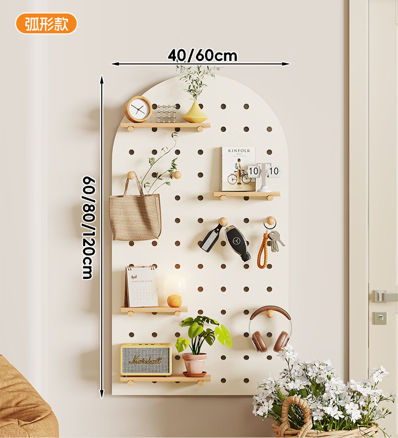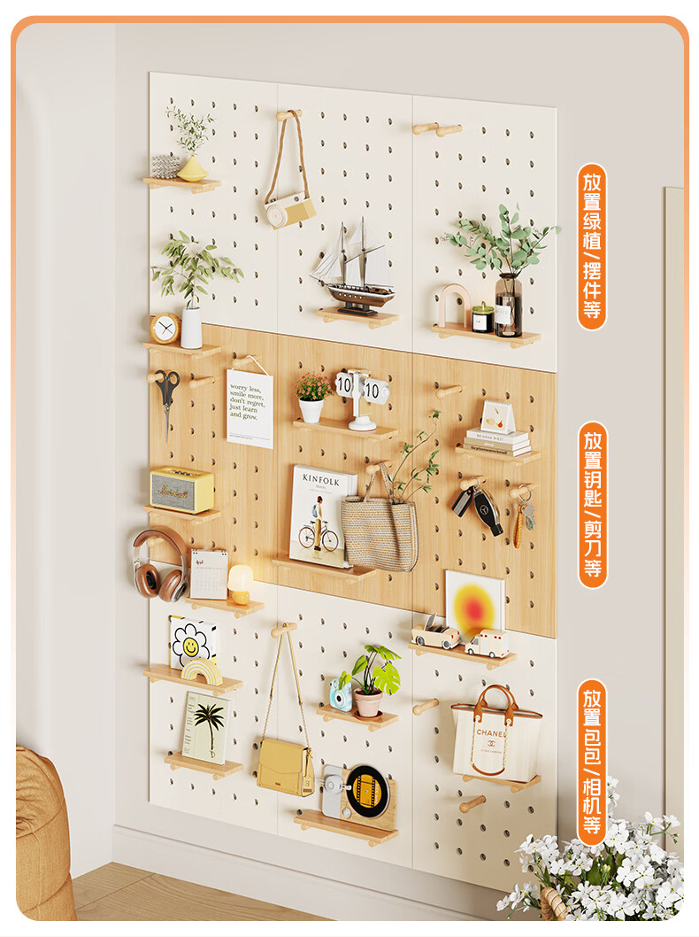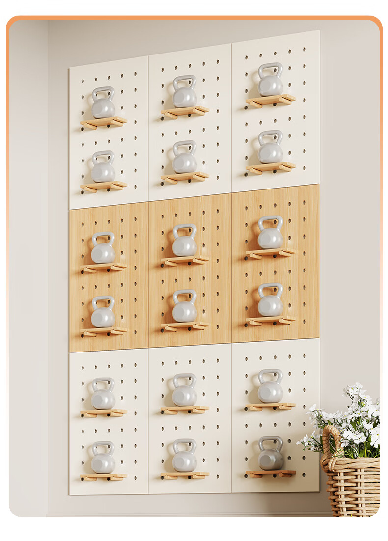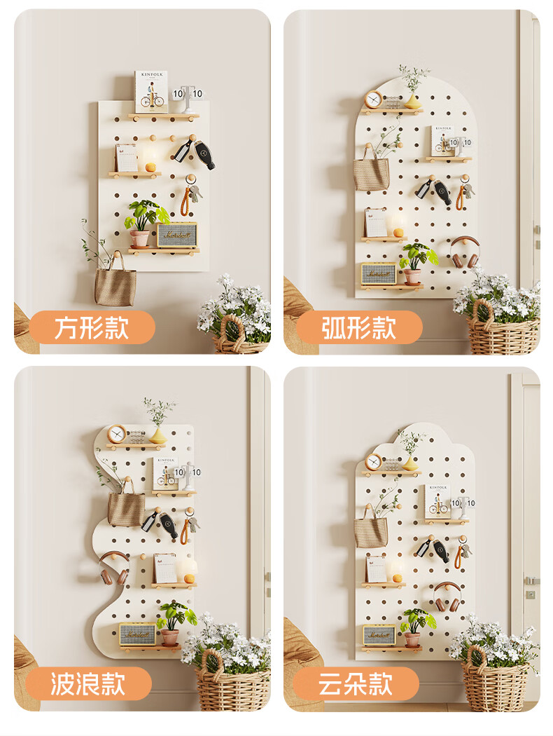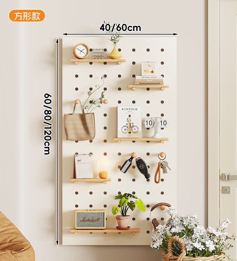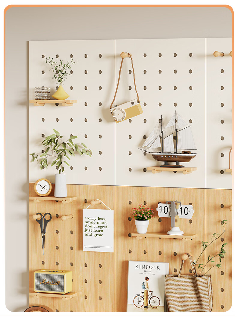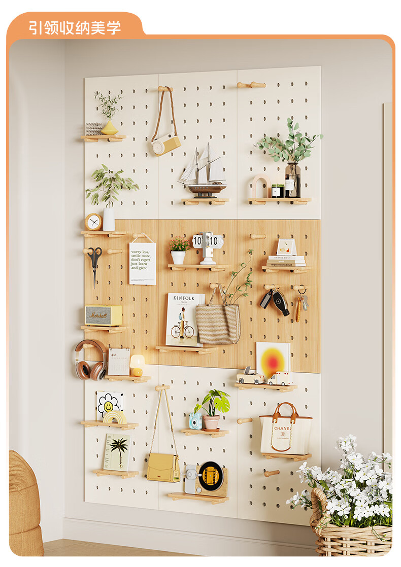 FANLILIN new solid wood hole board storage rack solid wood entrance hall wall storage rack creative shape solid wood storage rack combination package 40x60 warm white