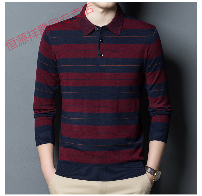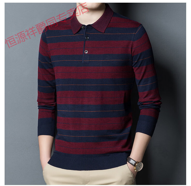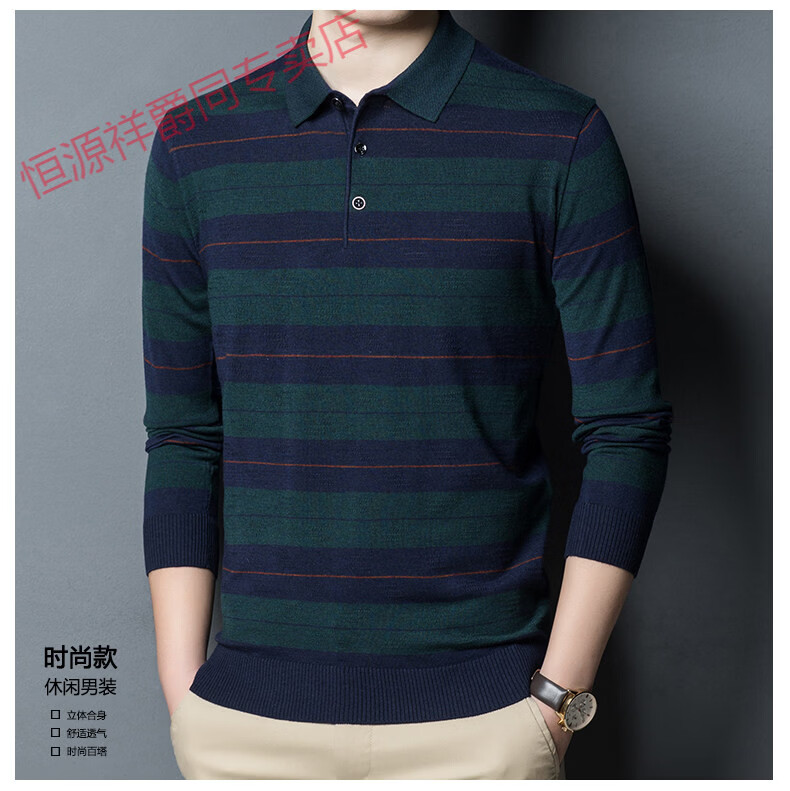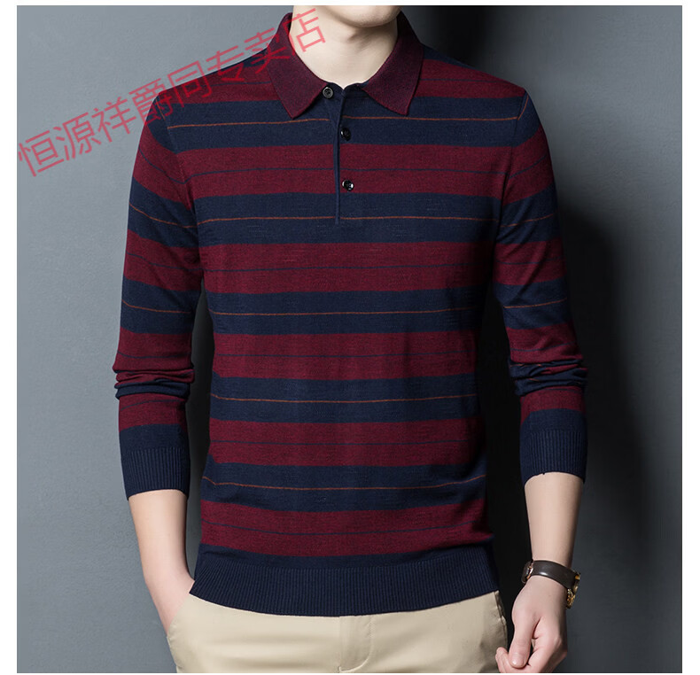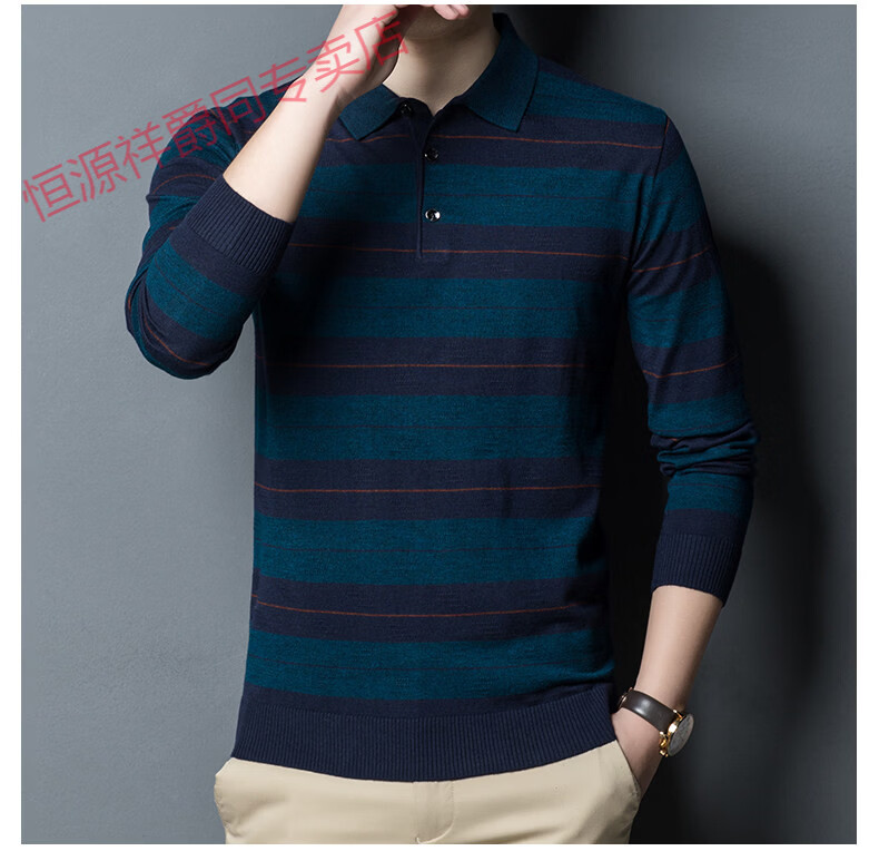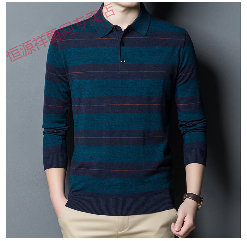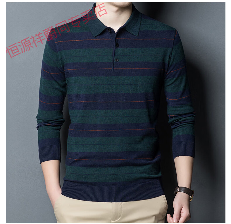 Hengyuanxiang high-end middle-aged men's long-sleeved T-shirt men's spring thin lapel wool sweater loose dad wear Molan 3015 M 165