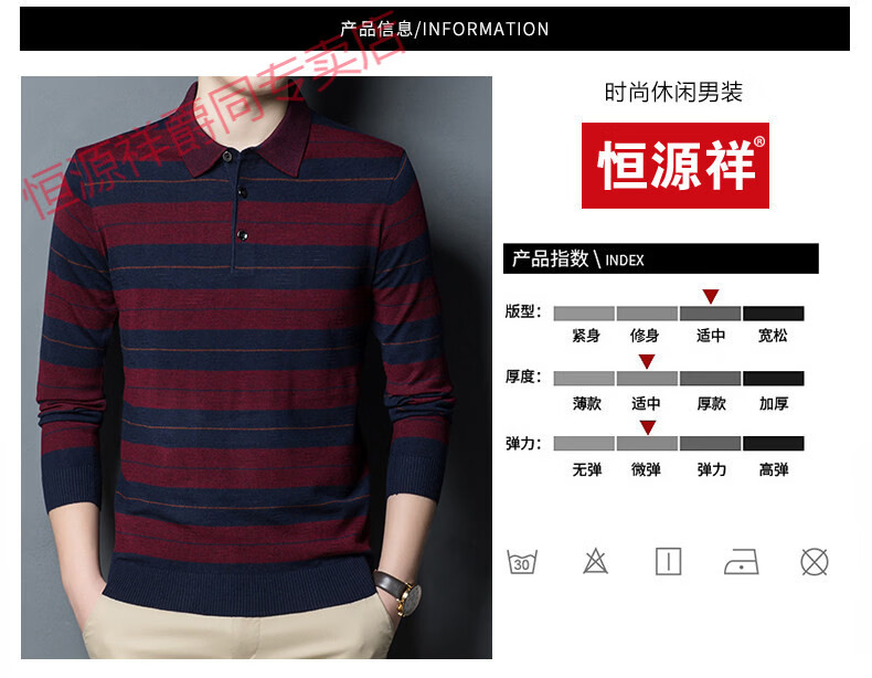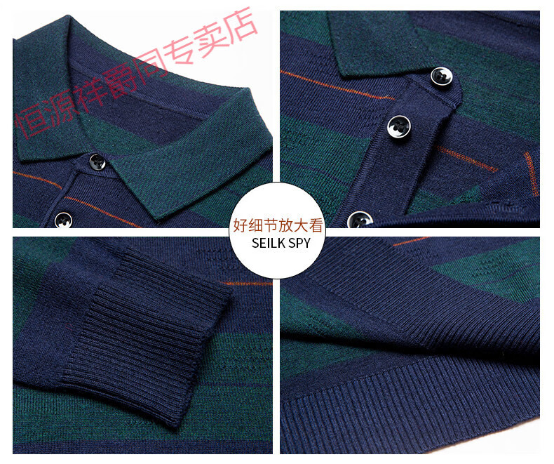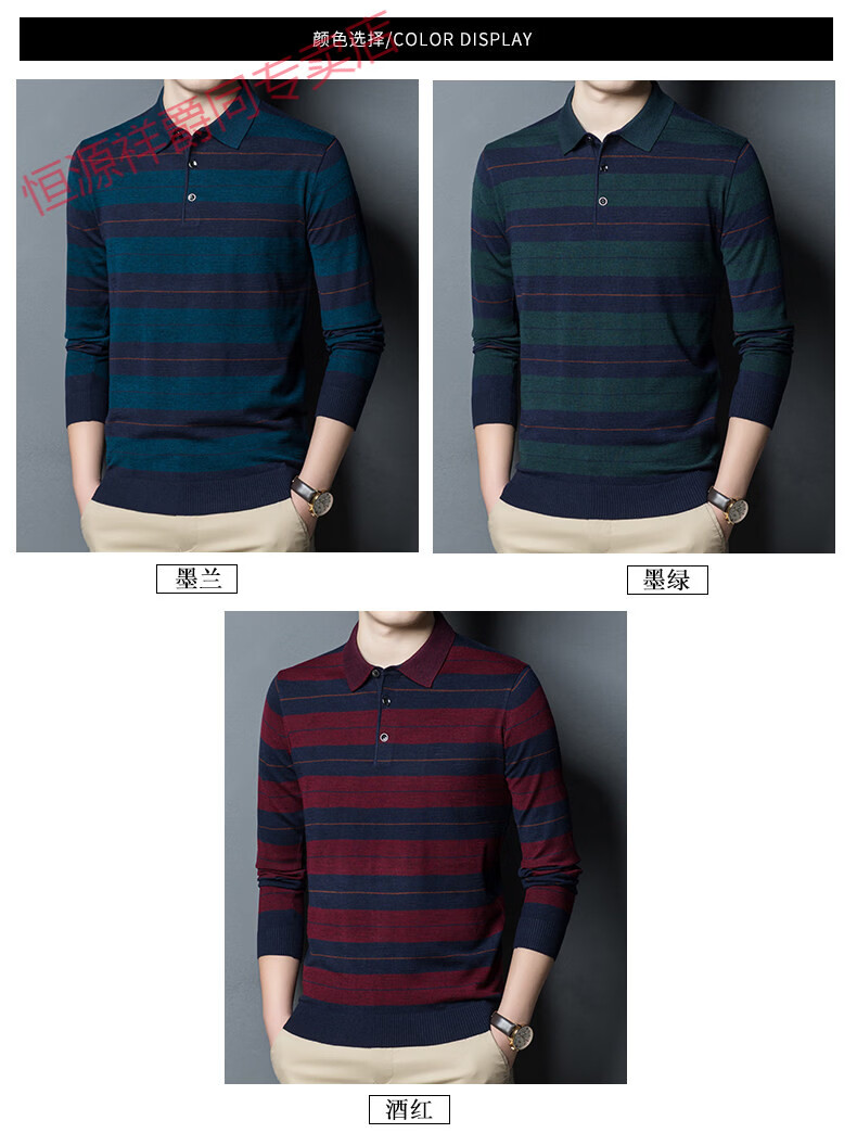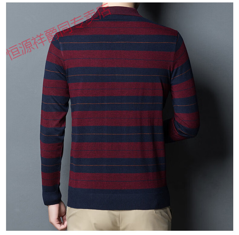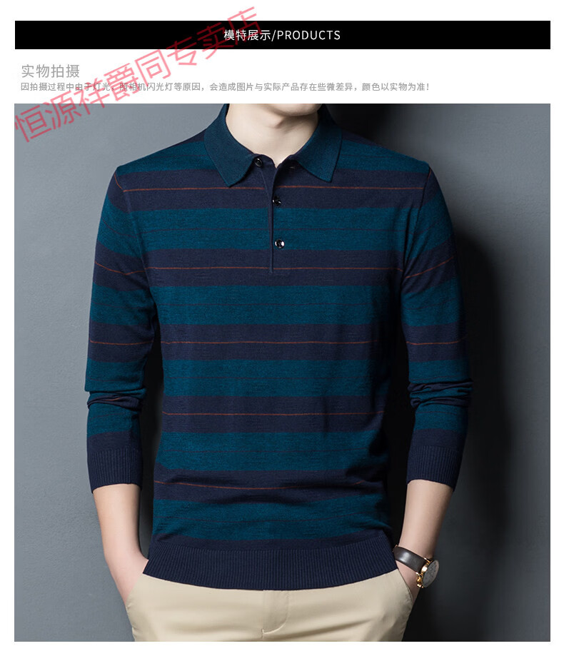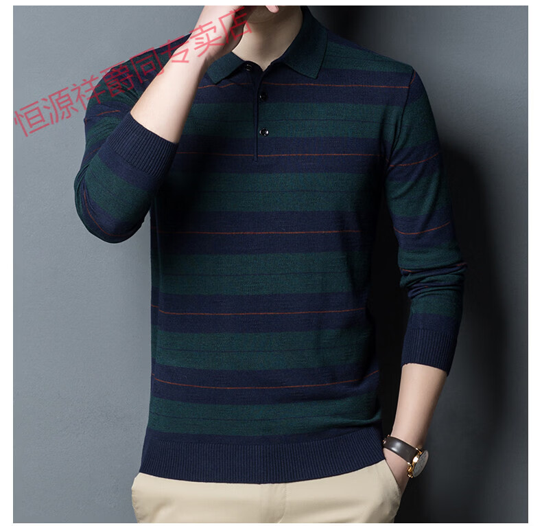 Hengyuanxiang high-end middle-aged men's long-sleeved T-shirt men's spring thin lapel wool sweater loose dad wear Molan 3015 M 165