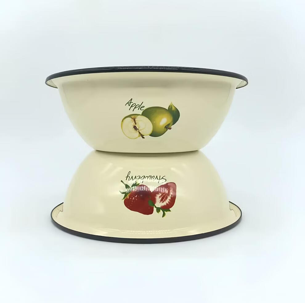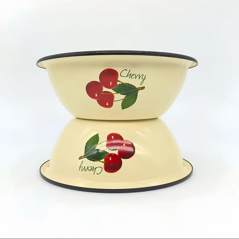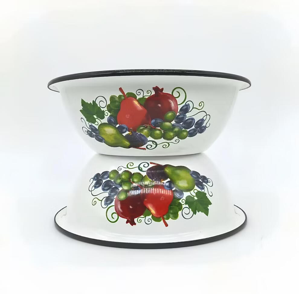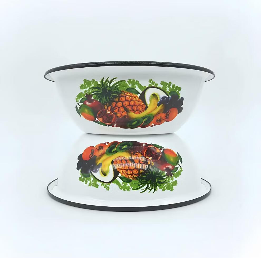 He Jiagong Russian enamel bowl Russian enamel kitchenware enamel basin small bowl old-fashioned enamel tableware kitchen small basin home white tropical fruit 800ml