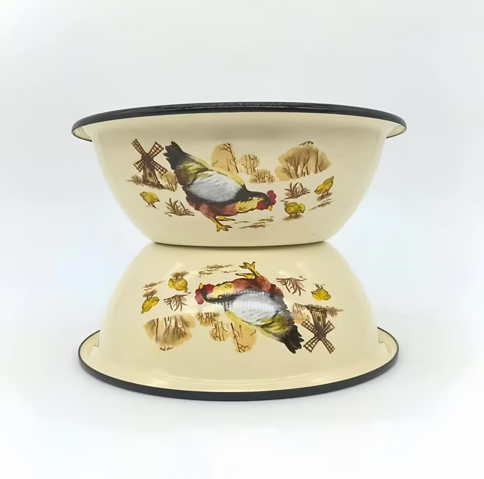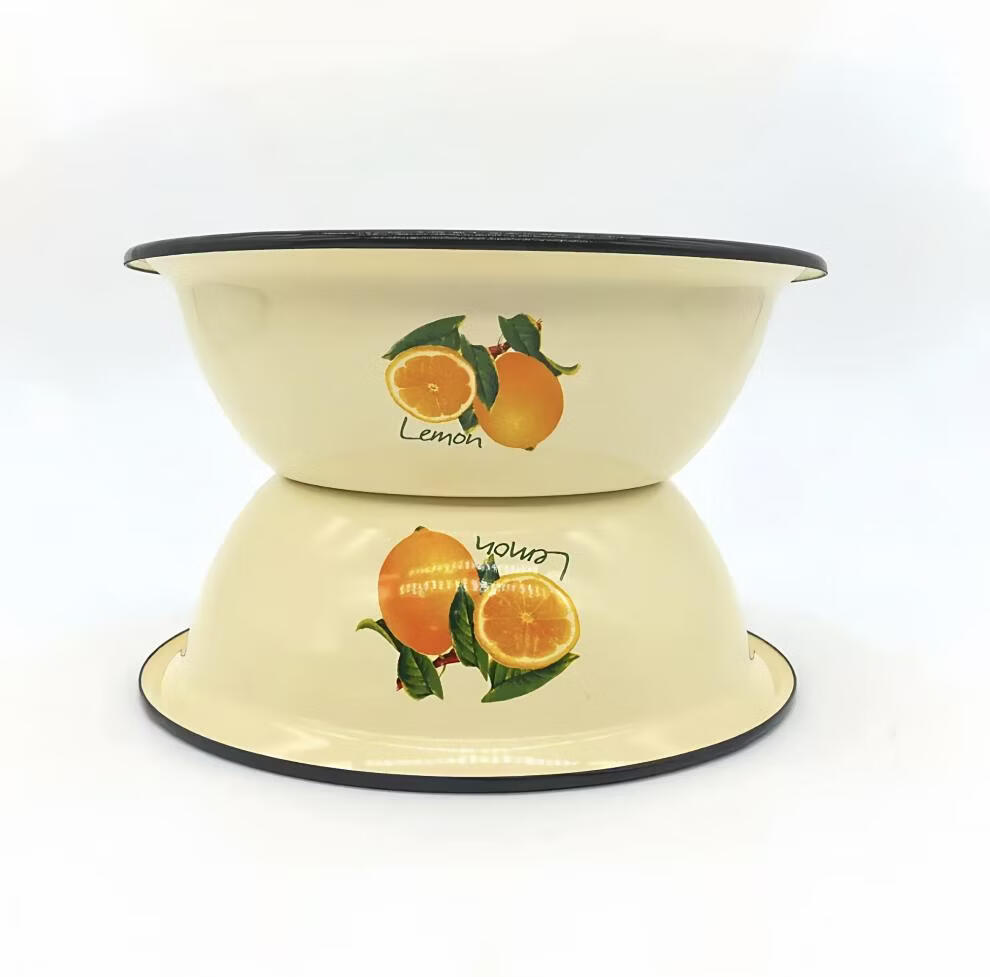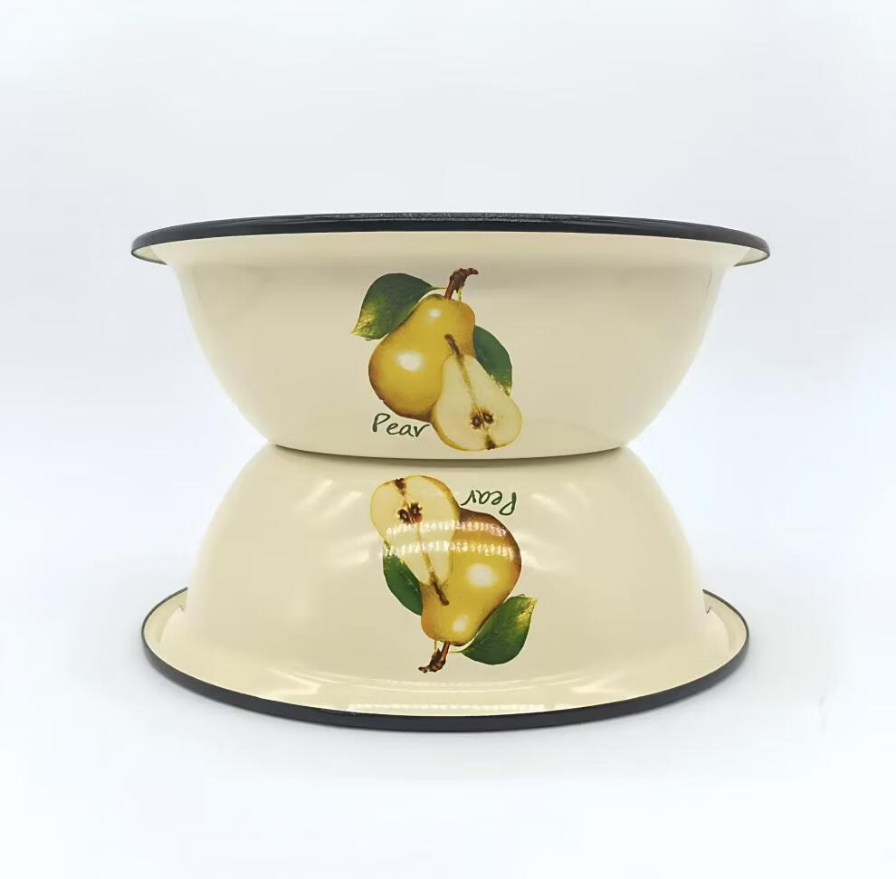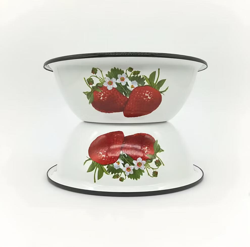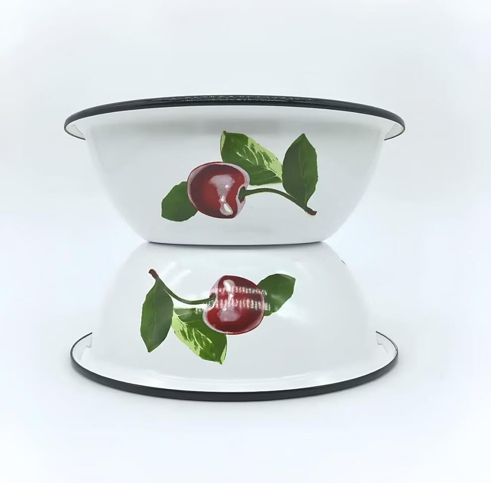 He Jiagong Russian enamel bowl Russian enamel kitchenware enamel basin small bowl old-fashioned enamel tableware kitchen small basin home white tropical fruit 800ml