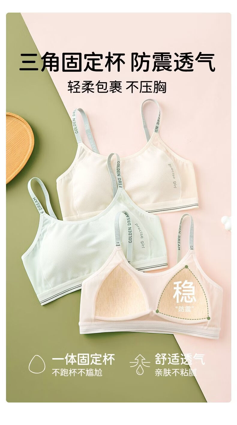 Urban beauty junior high school student second stage suspender girl underwear development stage high school student bra and vest for girls 3 pieces off-white + light pink + light skin L Recommended weight 80-95 Jin Jin equals 0.5 kg