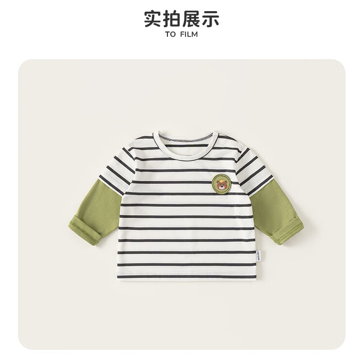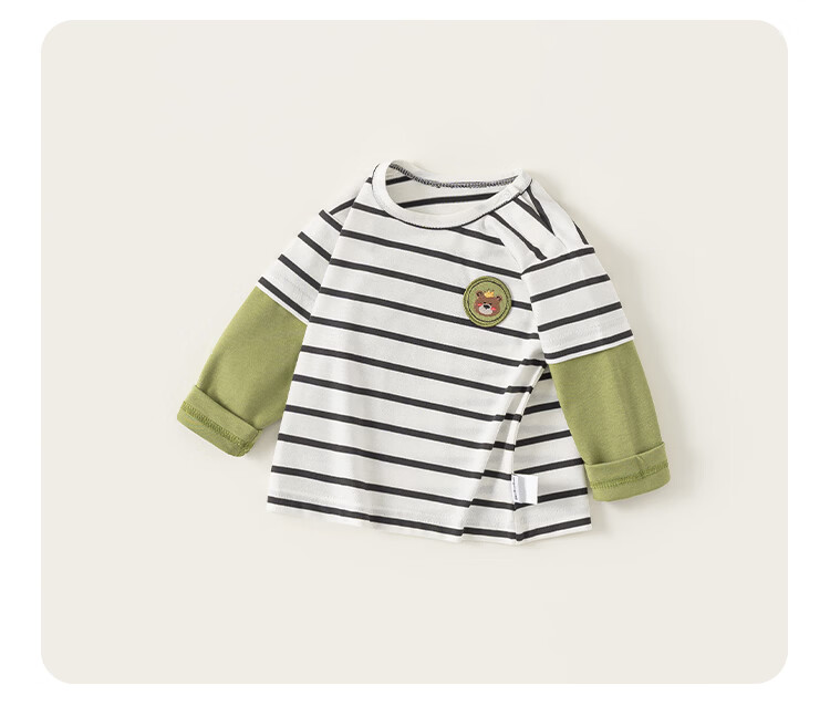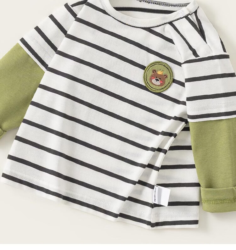 INSBOBO boys' bottoming shirt 2026 spring long-sleeved children's T-shirt baby fake two-piece tops new clothes trendy black and white strips 73