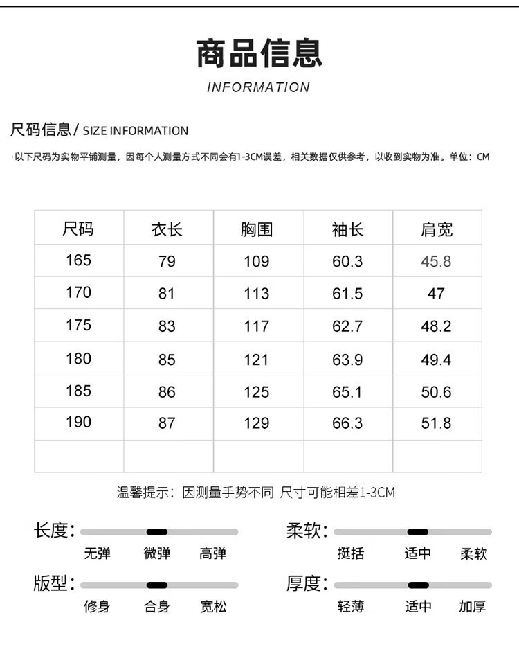 China (cm) 165 / 88-90 170 / 96-98 175 / 108-110 180 / 118-122 185 / 126-130