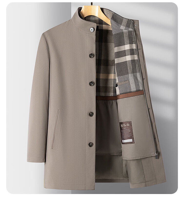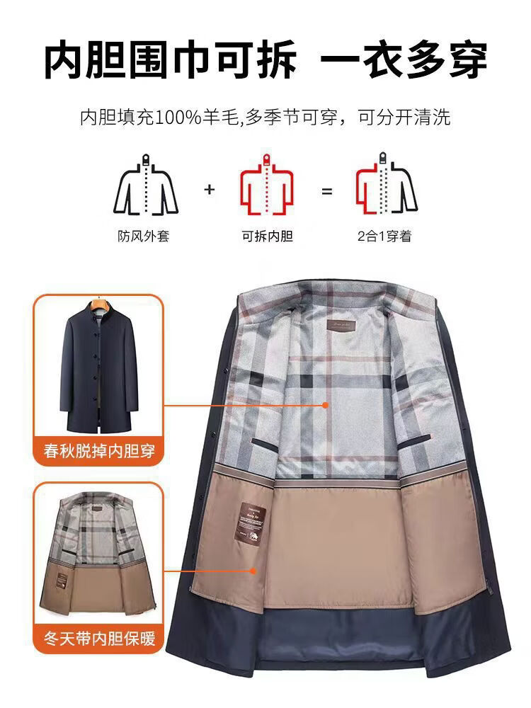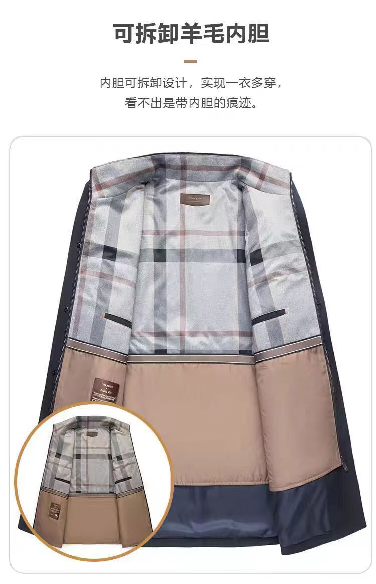 CARDANRO luxury brand high-end jacket men's 2026 autumn and winter new style young and middle-aged removable lining sheep wool windbreaker dark khaki color 3XL 190 175-185Jin Jin equals 0.5 kg