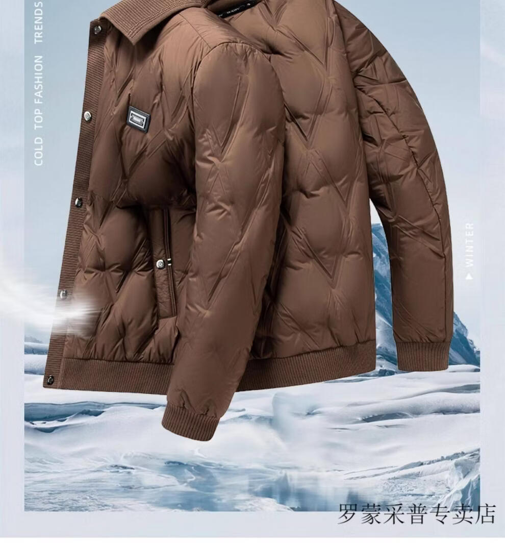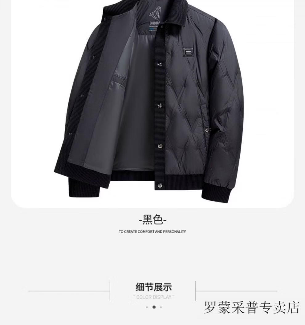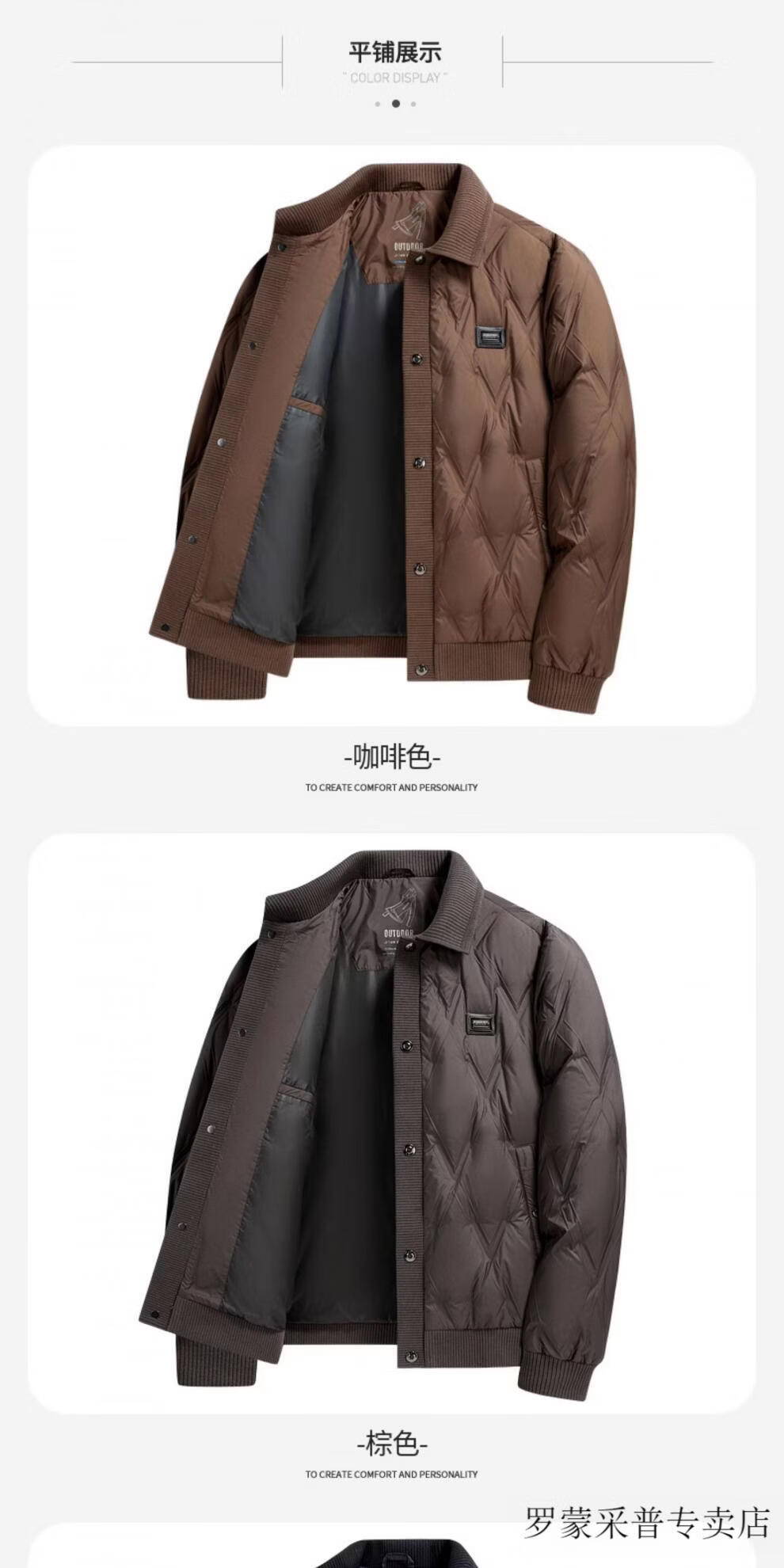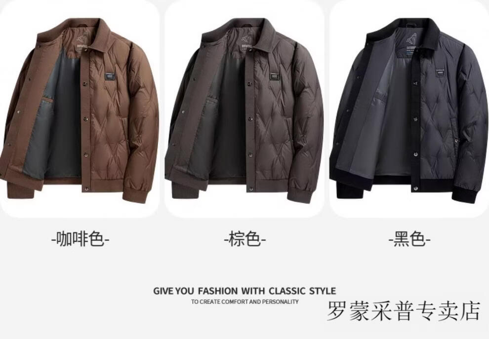 Luo Meng New National Standard 90 Velvet Threaded Lapel Down Jacket Winter Lapel Jacket Top Casual Business Lightweight Dad Outfit Black New National Standard No Velvet M 170