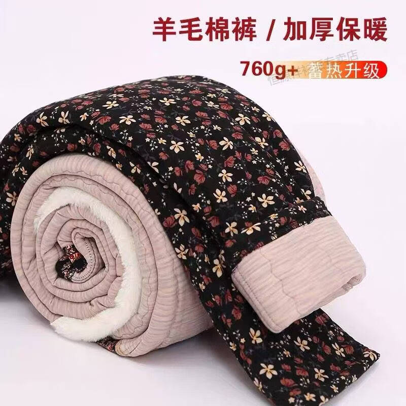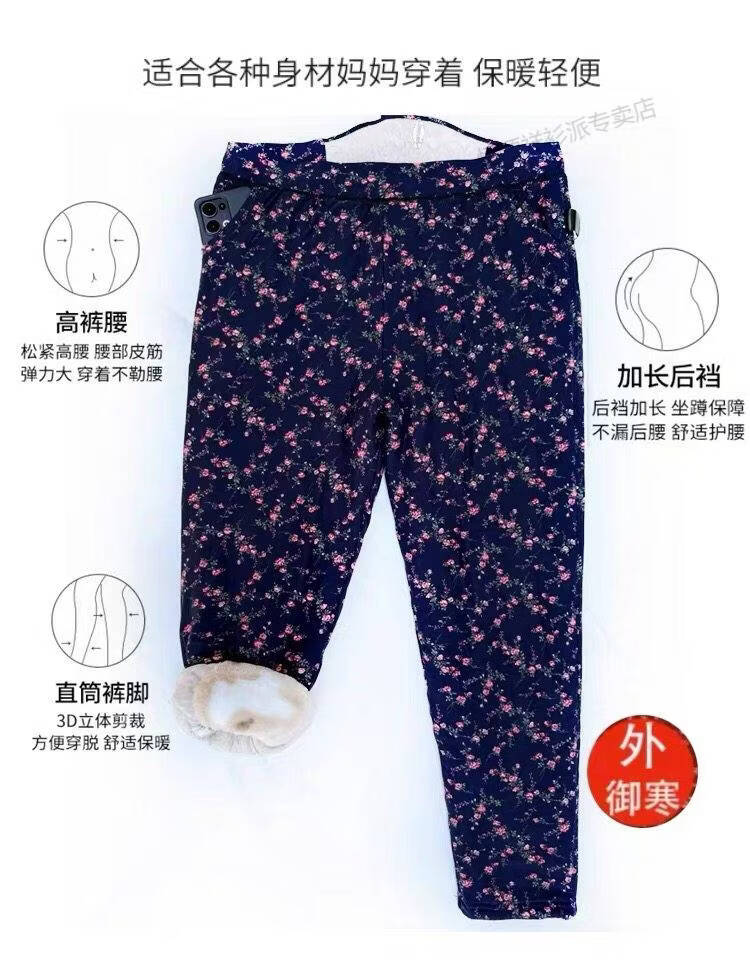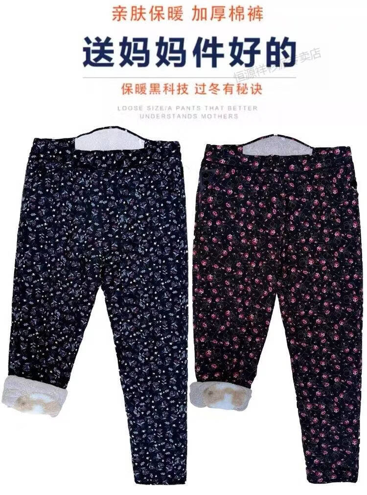 Hengyuanxiang middle-aged and elderly fattening and enlarging winter cotton pants wool mother's outer wear thickened large size warm pants high waist elastic pants thickened women's cotton pants random pattern one size fits all 2X 90-110Jin Jin is equal to 0.5 kg