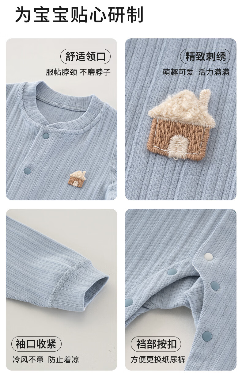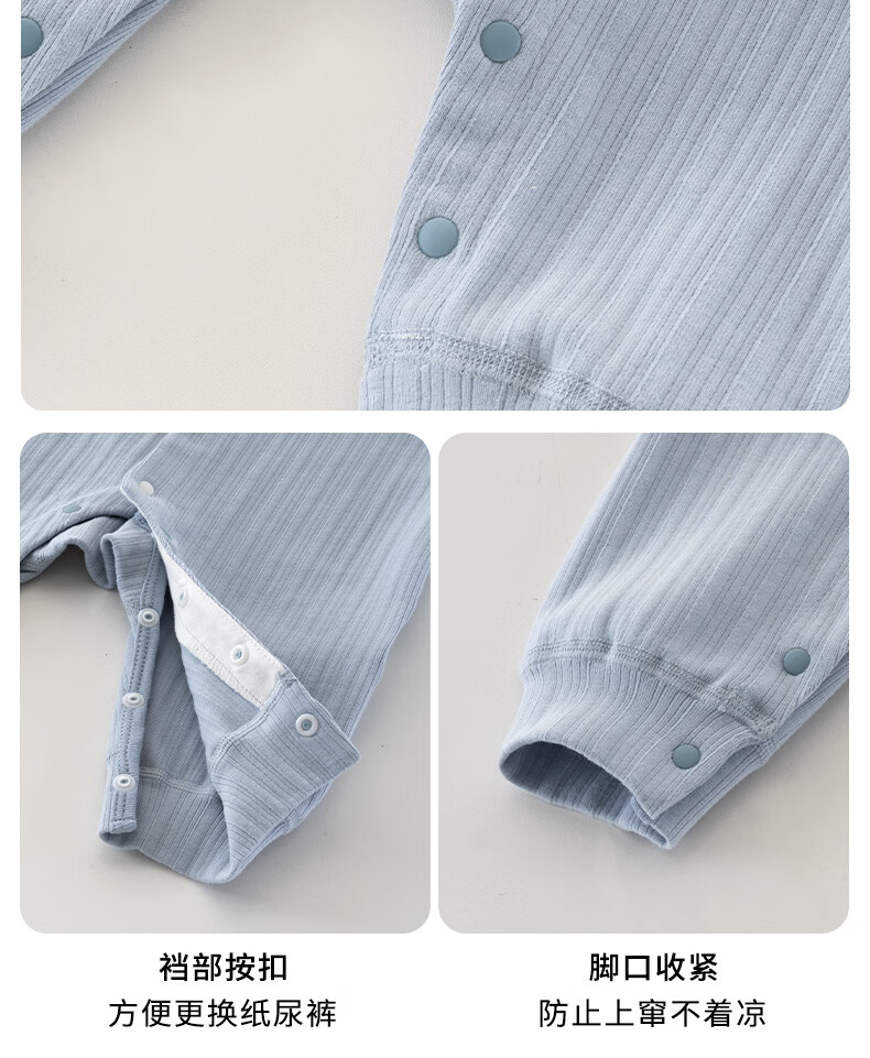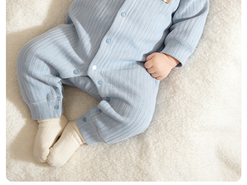 Yingbei Yi Newborn Spring and Autumn Jumpsuit 2026 New 100-Day Baby Harness One-Year-Old Baby Boneless Clothes Berlin Blue Without Hat 90cm