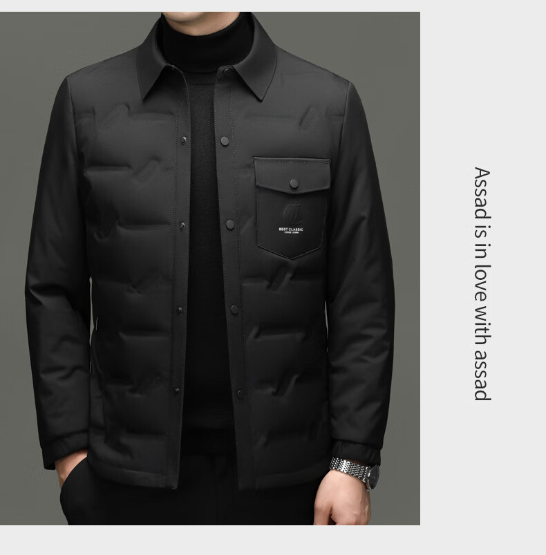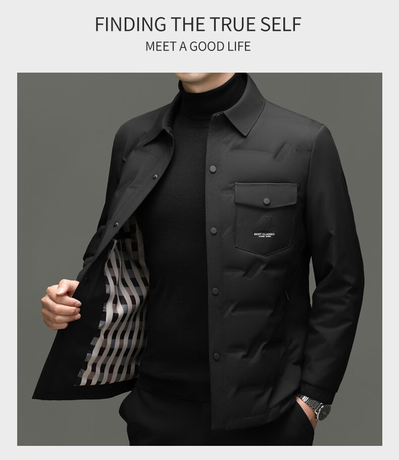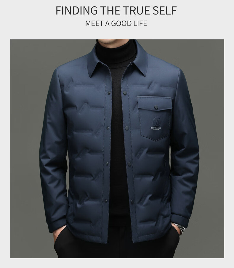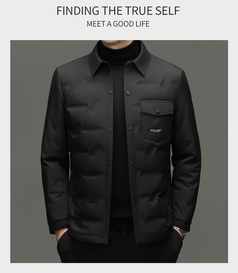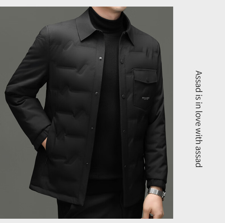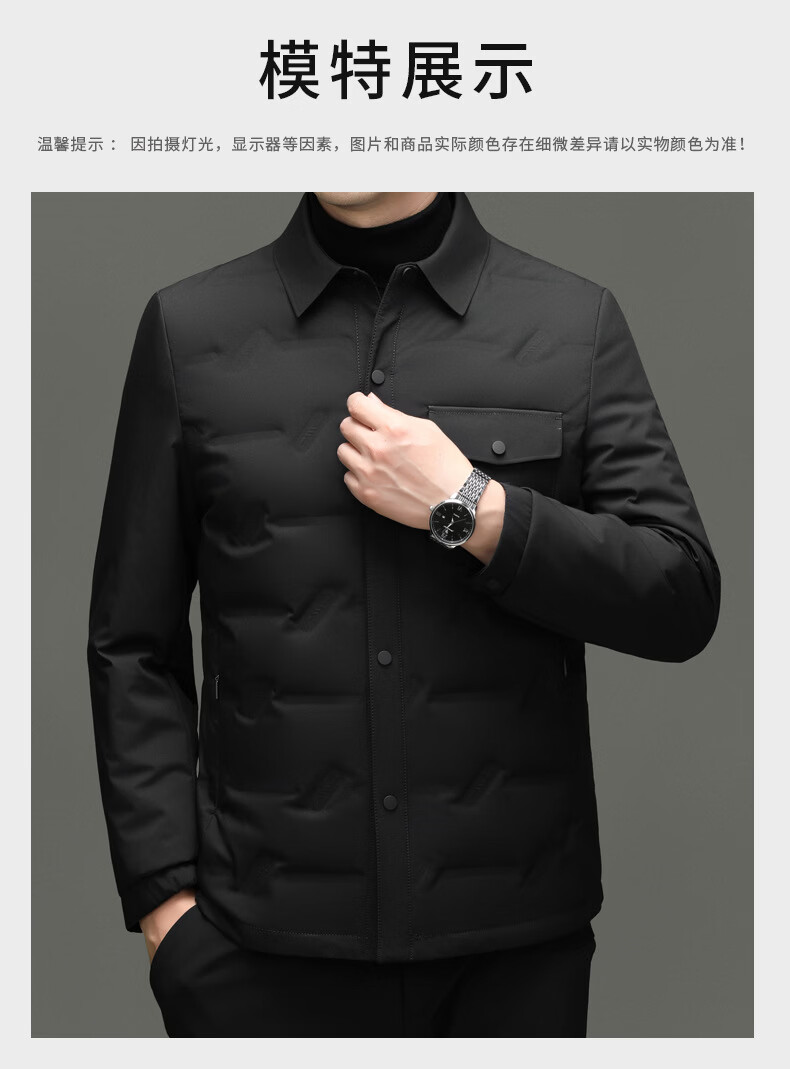 KBXNG Men's Light Lapel Down Jacket Casual Jacket Winter Middle-aged Dad's Business Versatile Down Jacket Black M 170