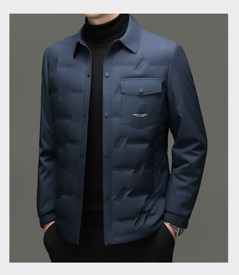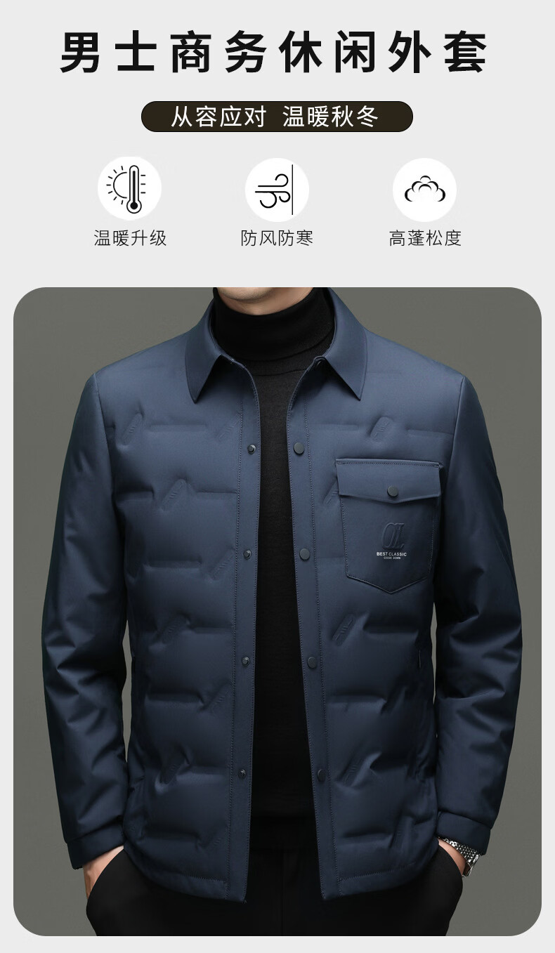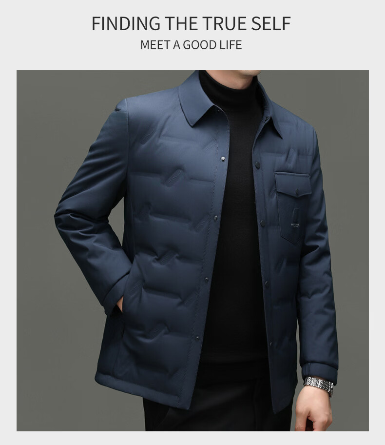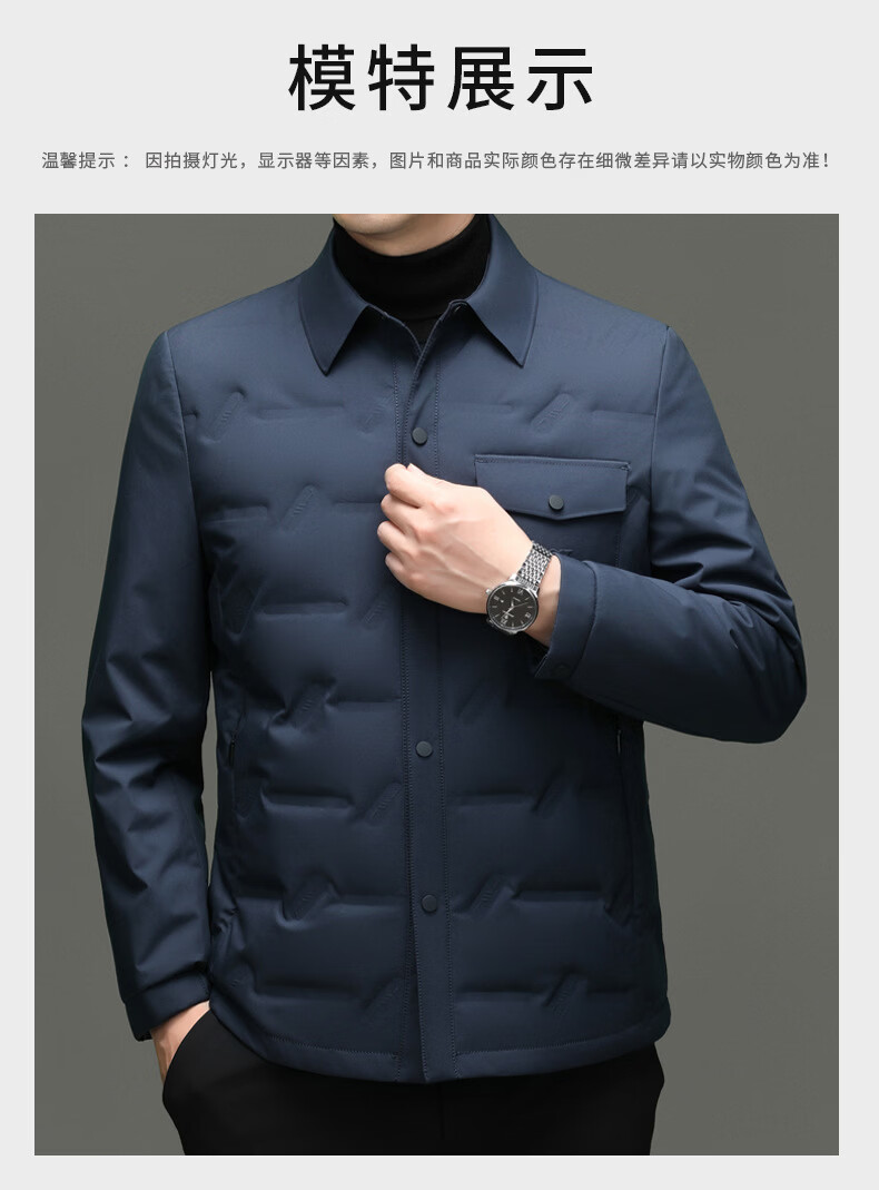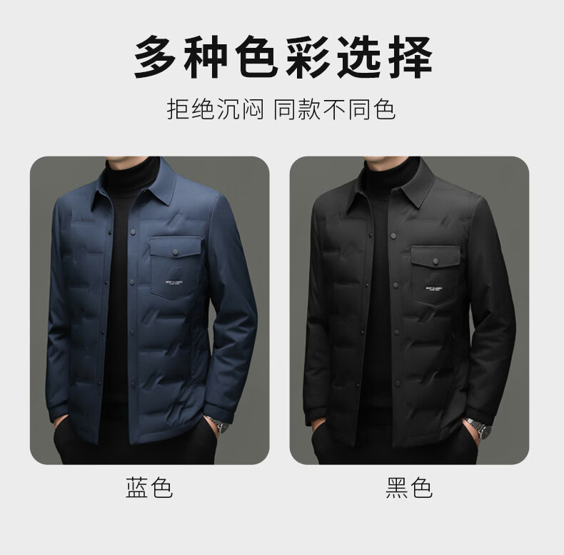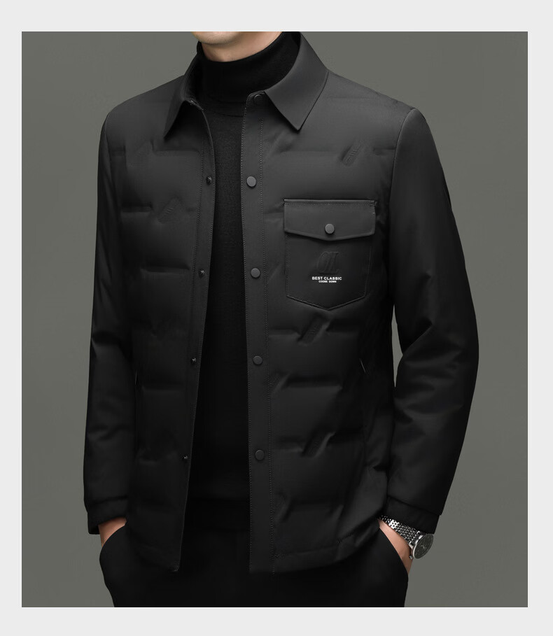 KBXNG Men's Light Lapel Down Jacket Casual Jacket Winter Middle-aged Dad's Business Versatile Down Jacket Black M 170