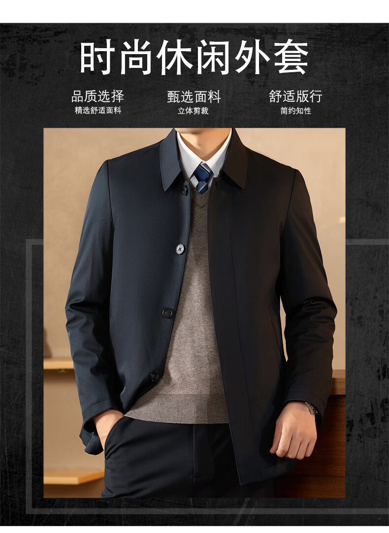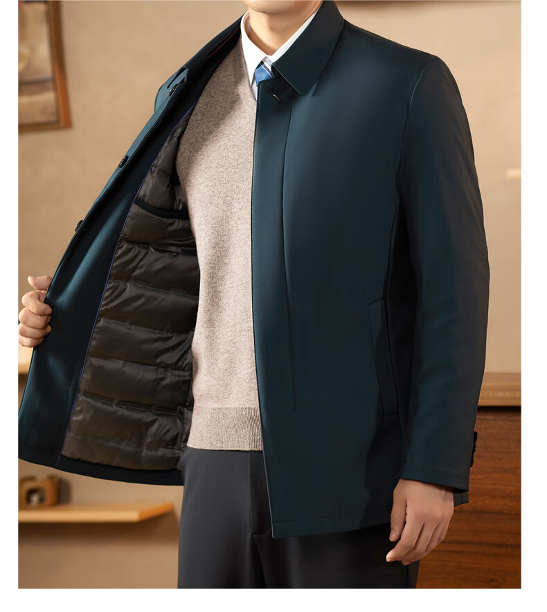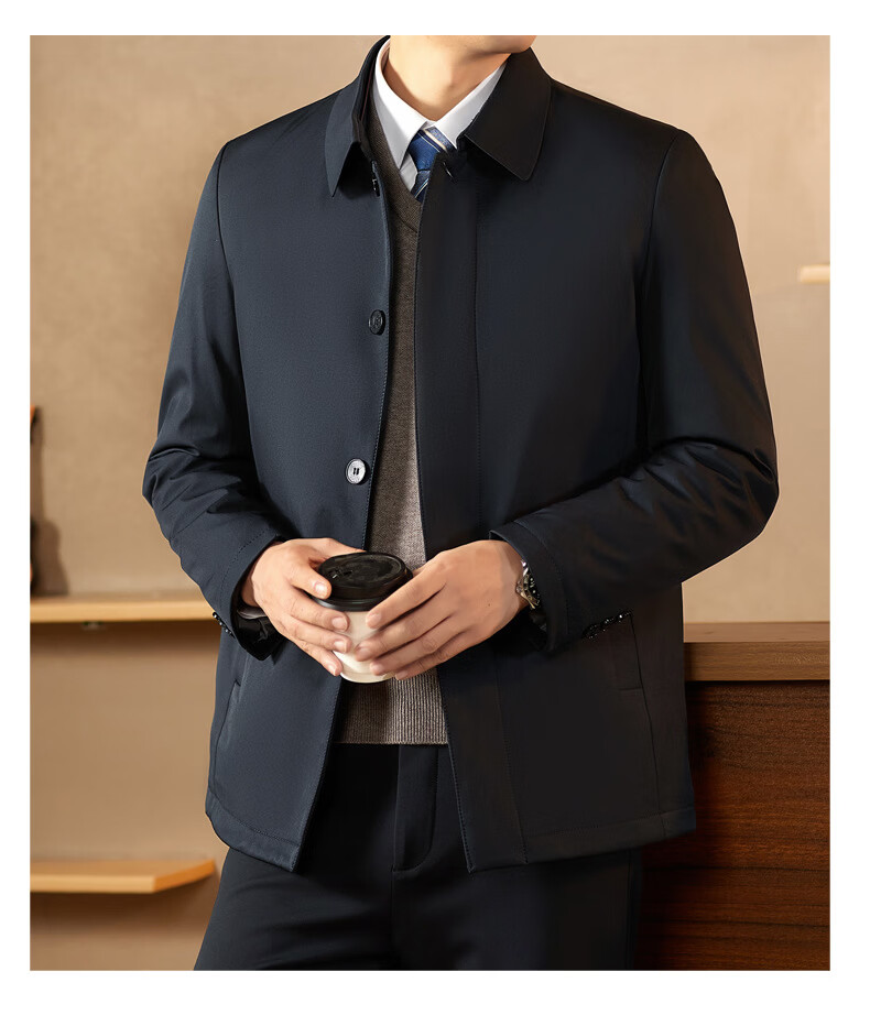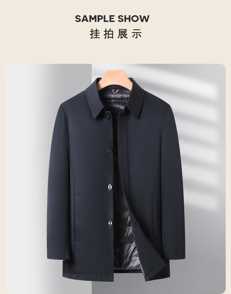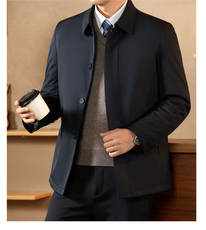 KBXNG Jinba middle-aged lapel down jacket men's winter trendy business dad wear fashionable simple thickened mid-length casual navy blue 2XL 185