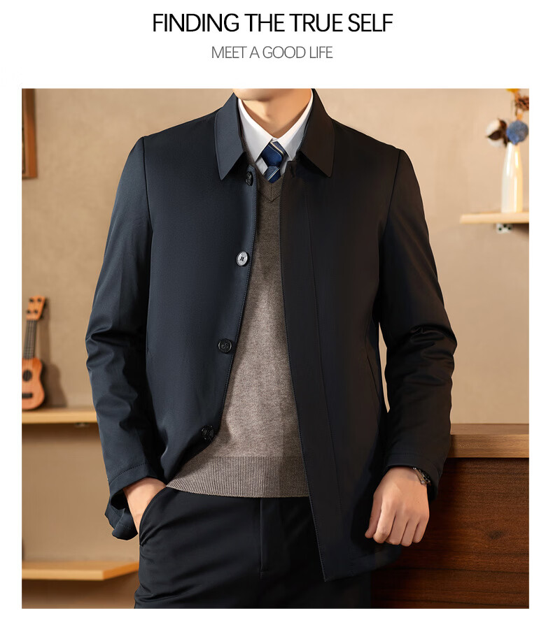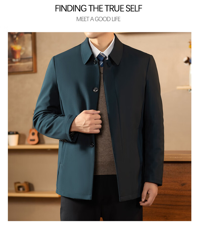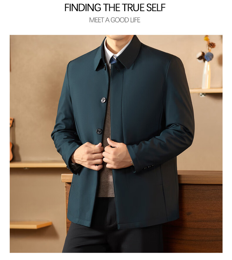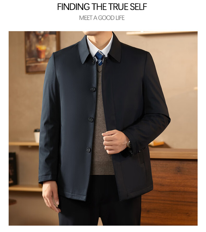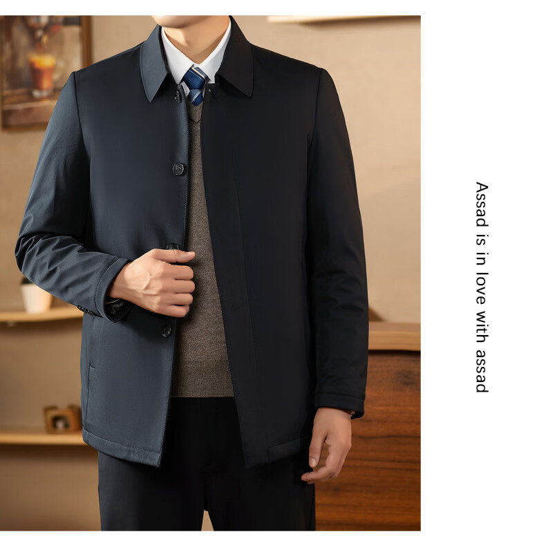 KBXNG Jinba middle-aged lapel down jacket men's winter trendy business dad wear fashionable simple thickened mid-length casual navy blue 2XL 185