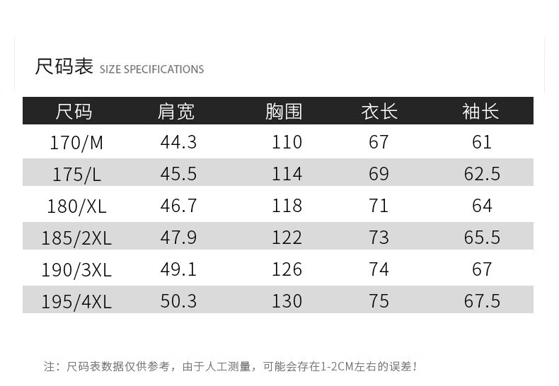 China (cm) 165 / 88-90 170 / 96-98 175 / 108-110 180 / 118-122 185 / 126-130