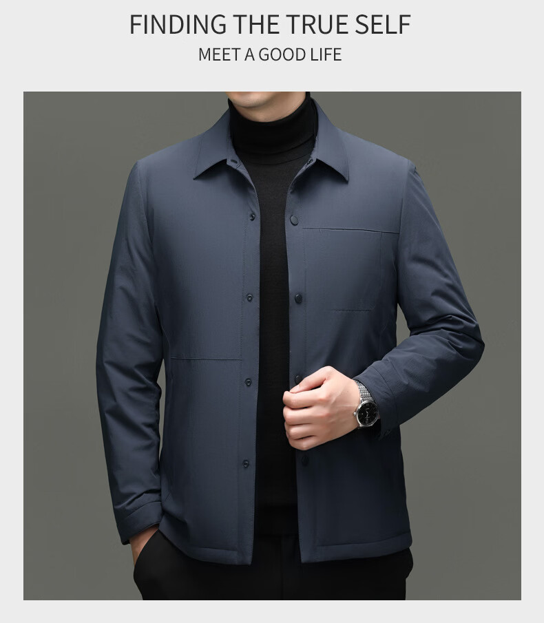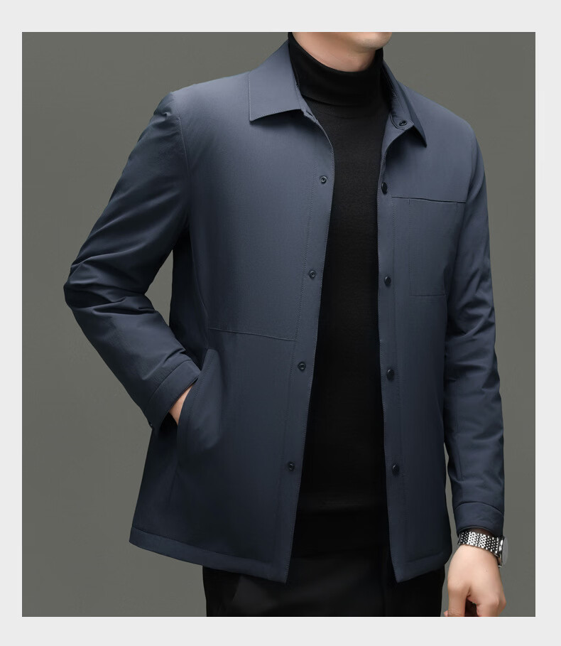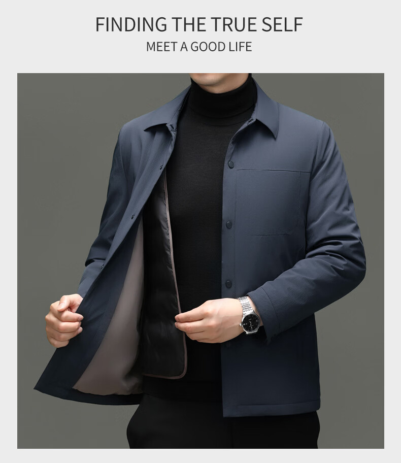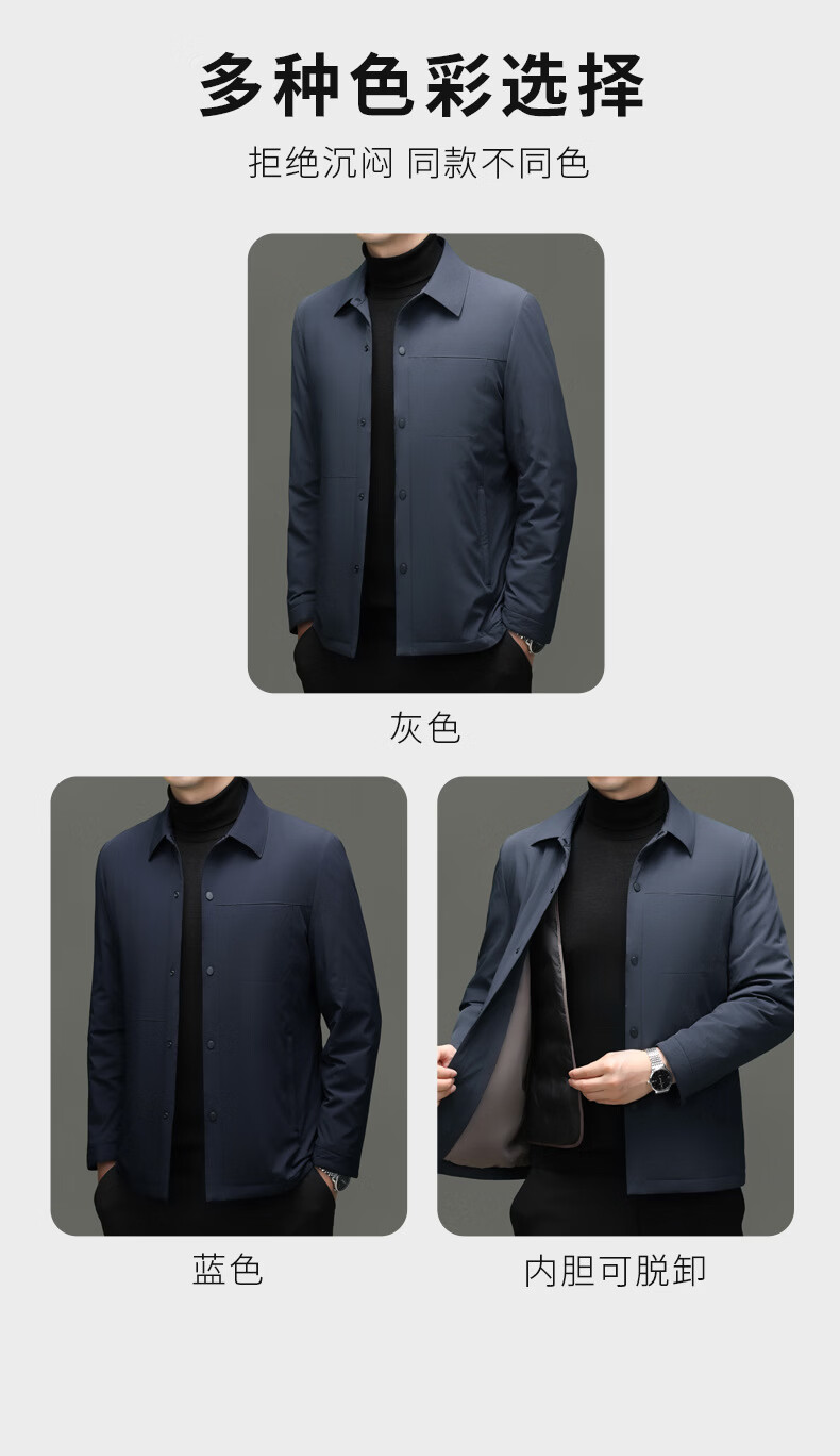 KBXNG Jinba light luxury men's goose down jacket lapel casual jacket middle-aged business trend removable down jacket to keep warm gray L 175
