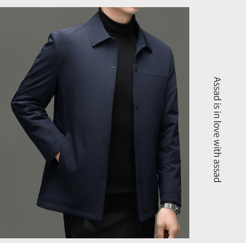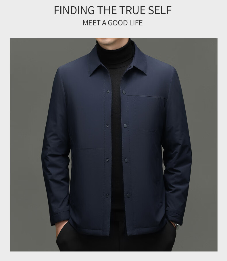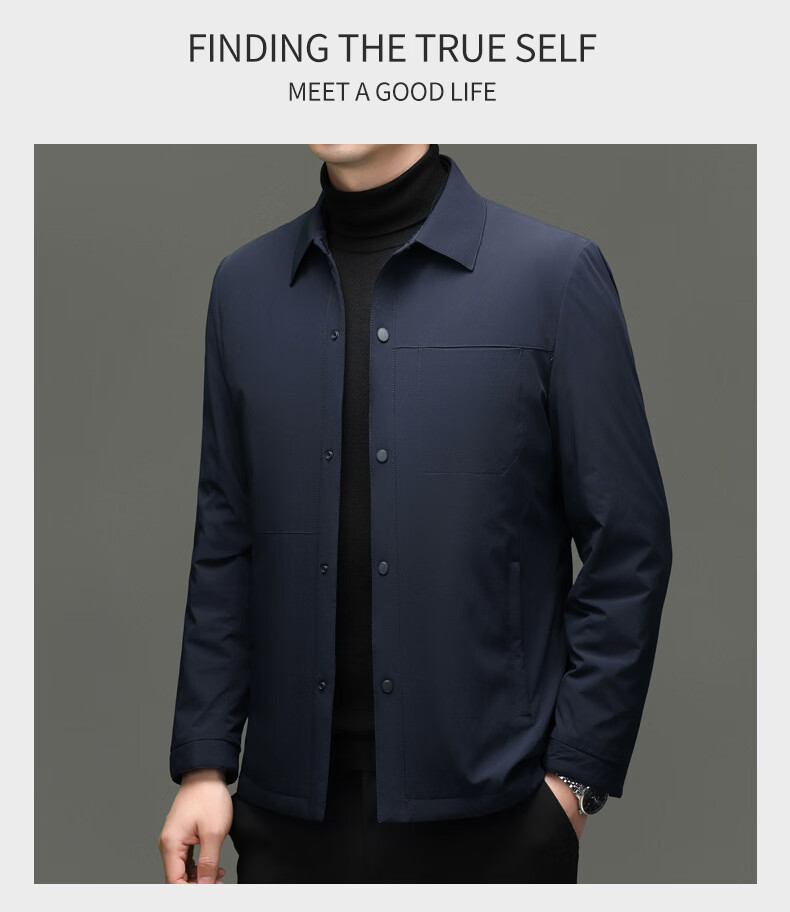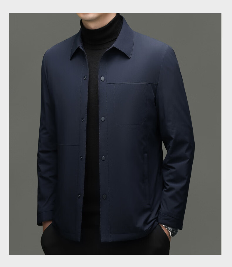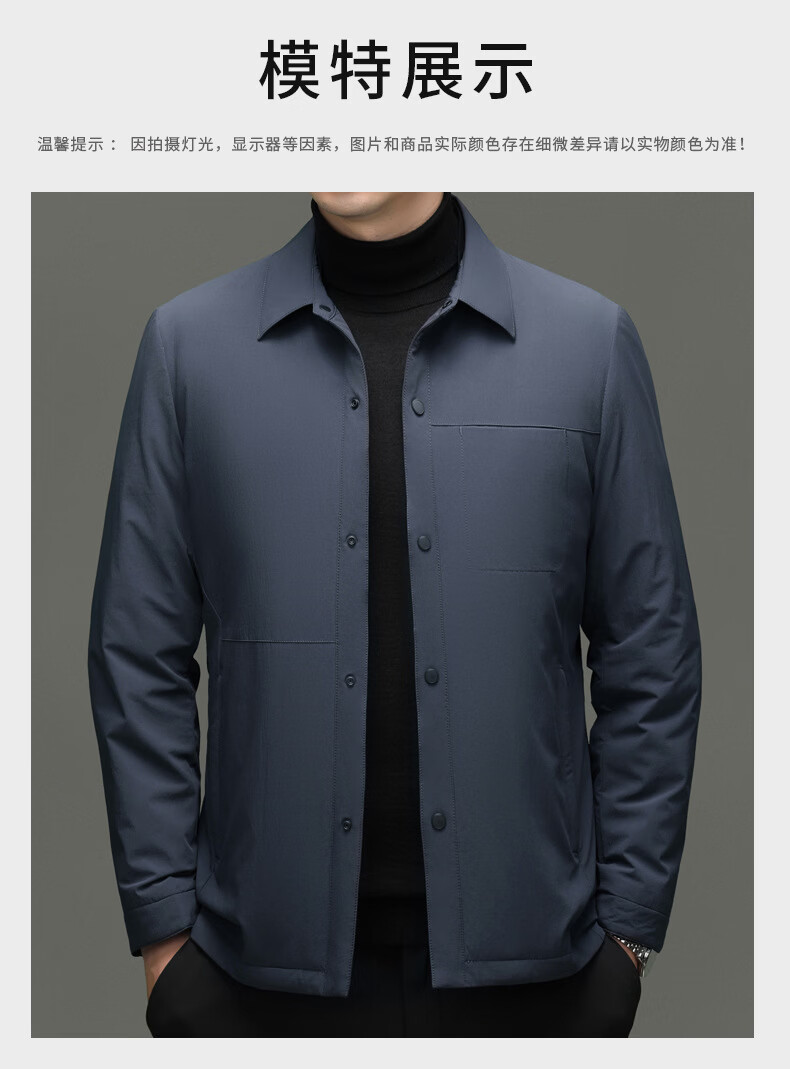 KBXNG Jinba light luxury men's goose down jacket lapel casual jacket middle-aged business trend removable down jacket to keep warm gray L 175