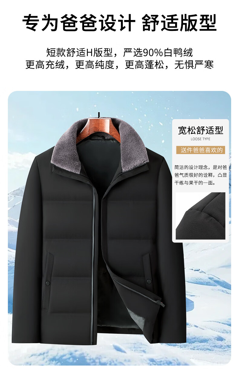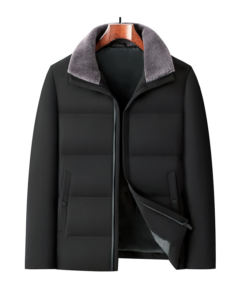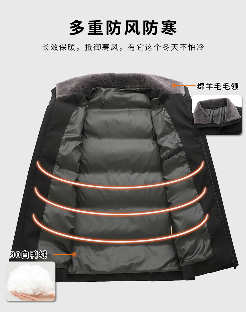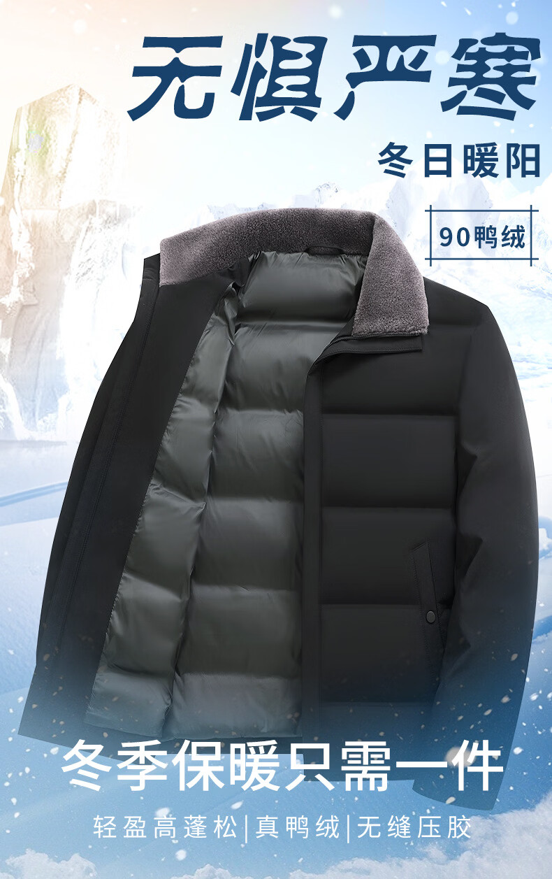 KBXNG Jinba Winter New Casual Down Jacket Men's Lamb Feather Duck Down Liner Men's Top Middle-aged Dad Warmth 010959 Black M 170/48