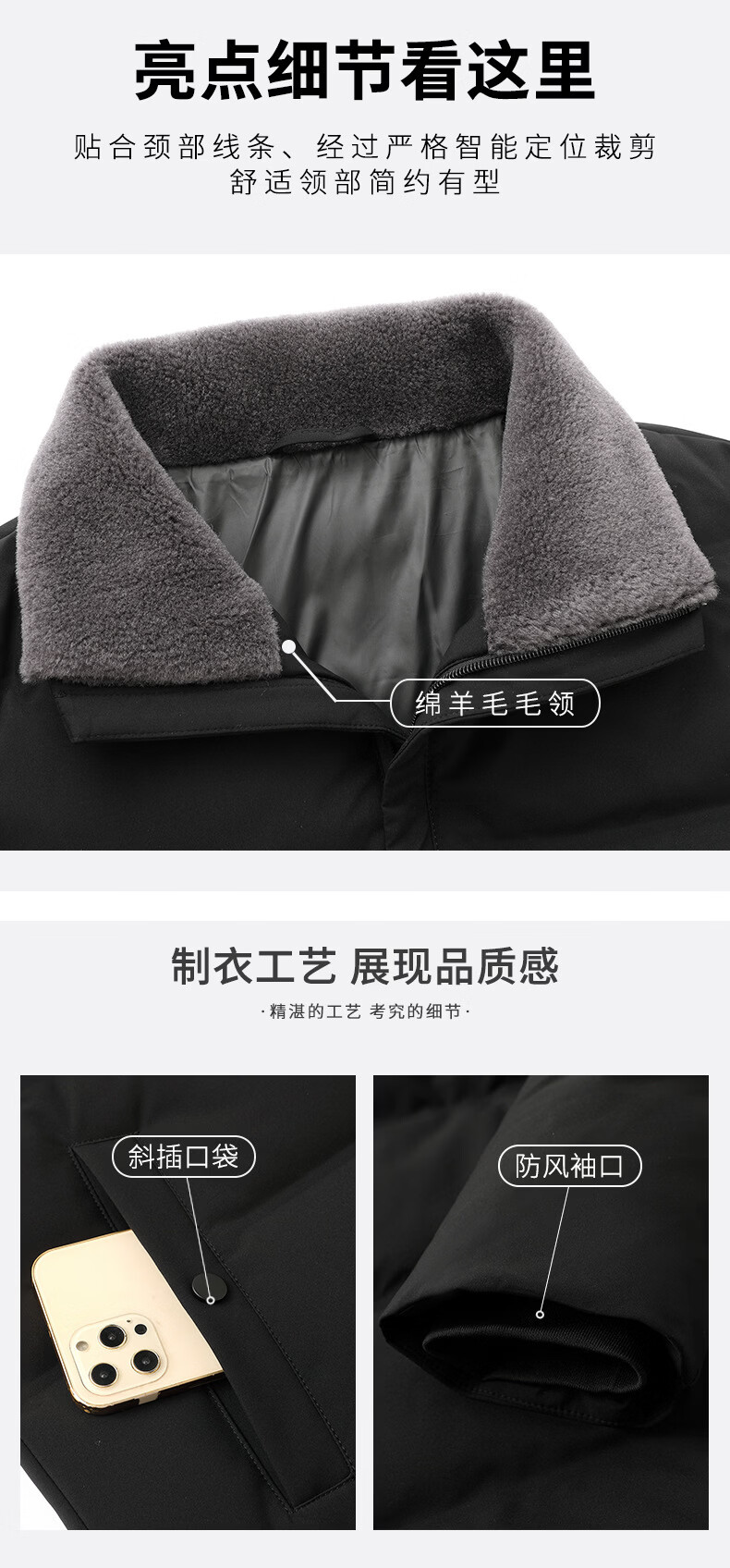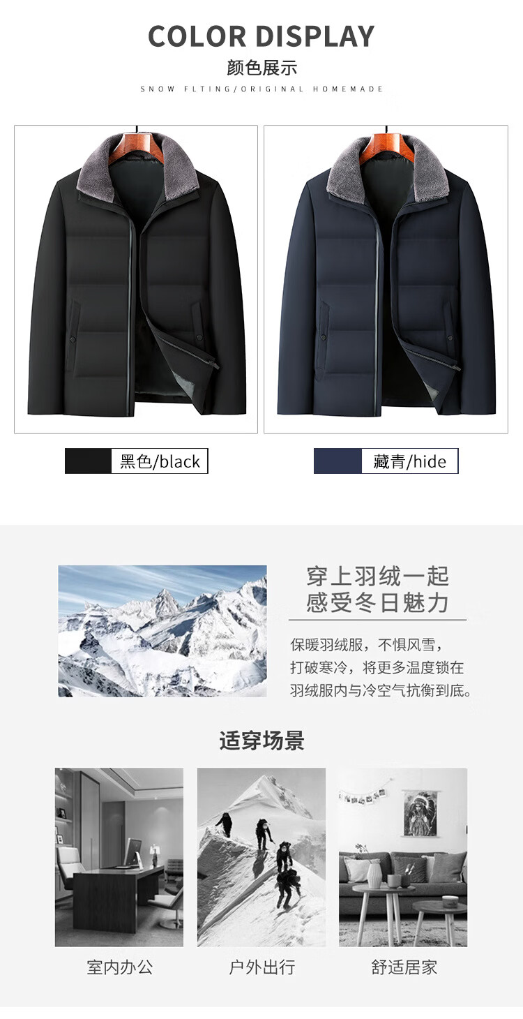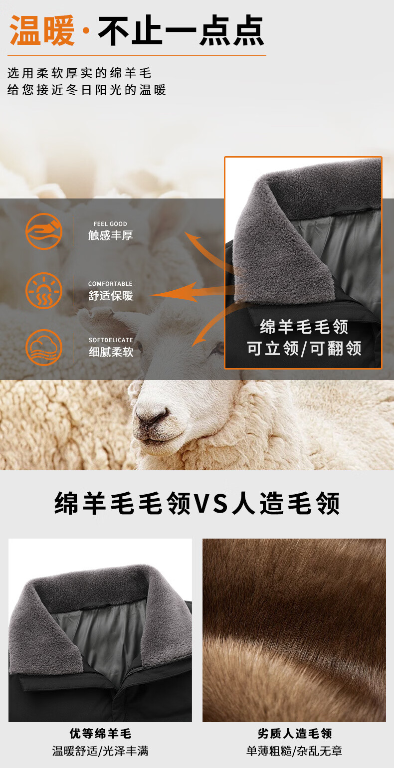 KBXNG Jinba Winter New Casual Down Jacket Men's Lamb Feather Duck Down Liner Men's Top Middle-aged Dad Warmth 010959 Black M 170/48