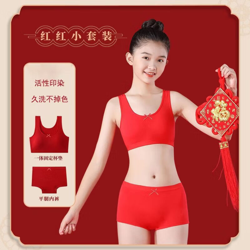 Cat Man (MiiOW) natal year girl bra New Year's red underwear panty set 12 years old pure cotton vest lucky butterfly + flat/corner underwear fixed cup wide shoulder strap 170 80A155-165CM/90-105Jin Jin equals 0.5 kg