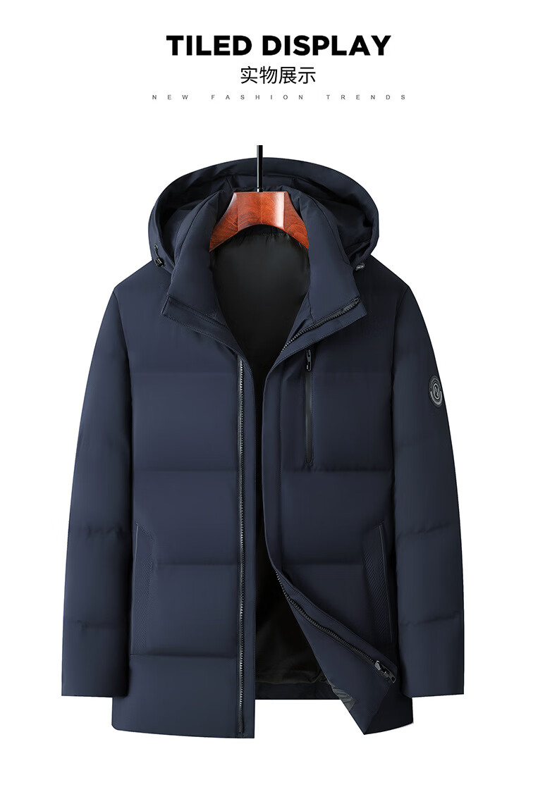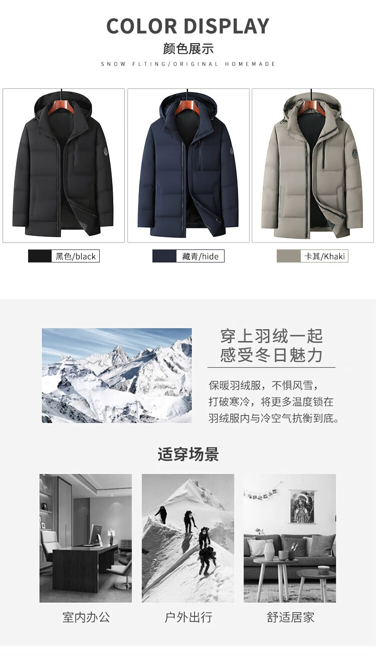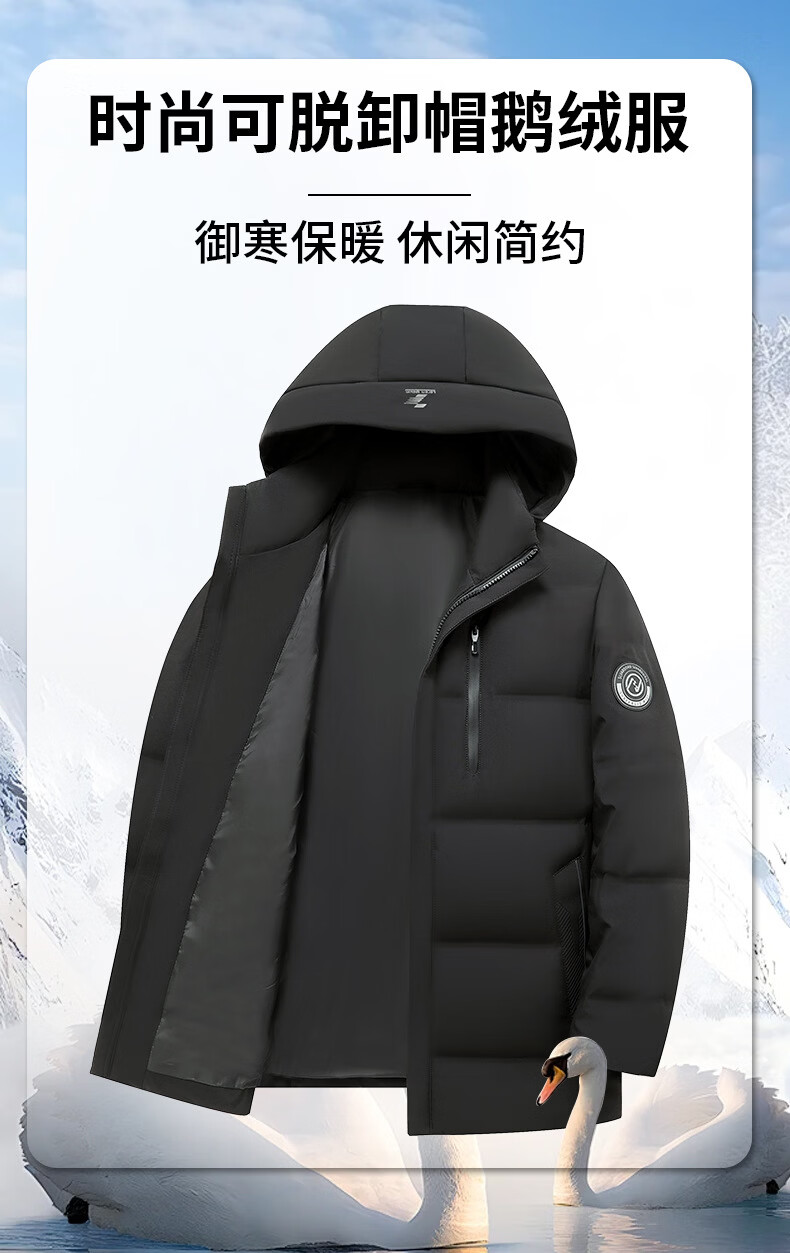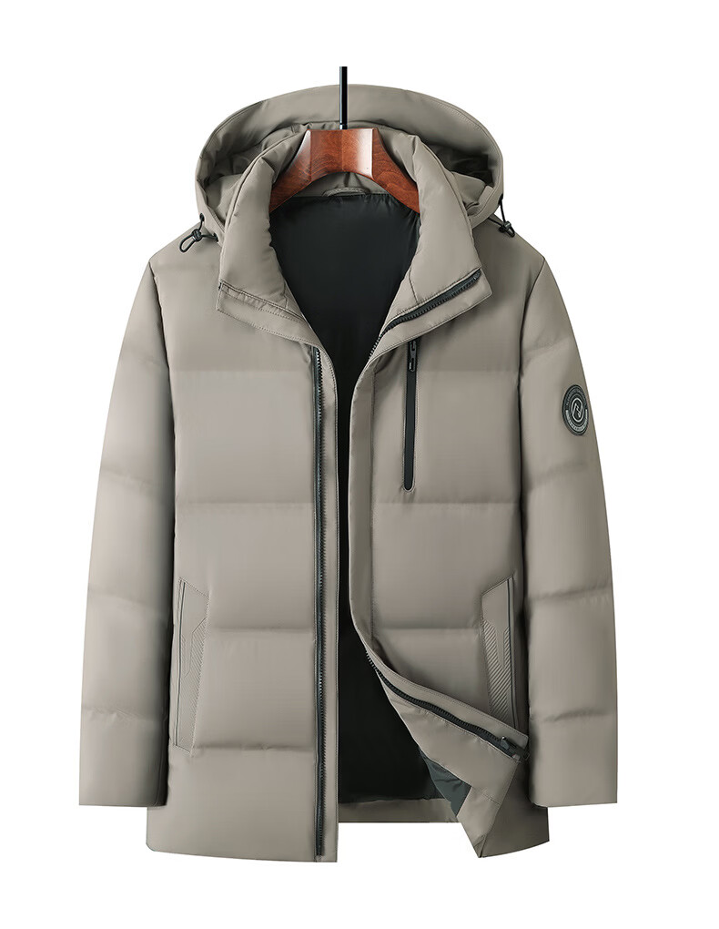 KBXNG Jinba men's hooded down jacket winter new white goose down stand-up collar warm jacket middle-aged dad wear cold-resistant thick 04678 Khaki 3XL 190/56