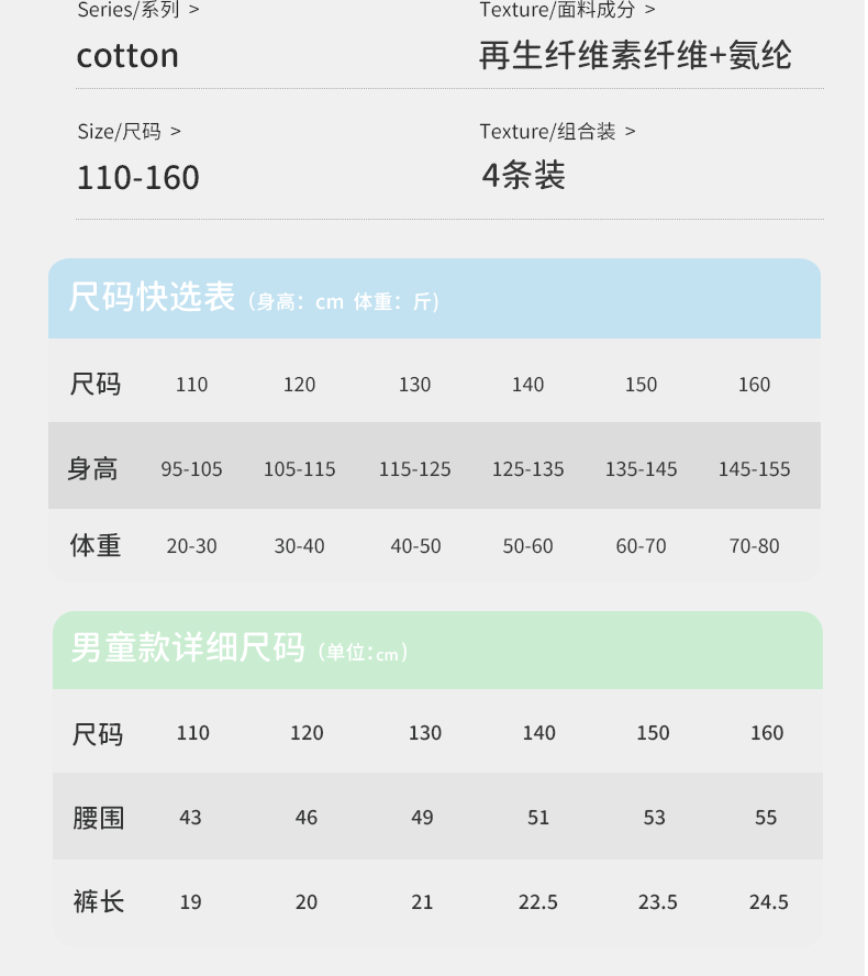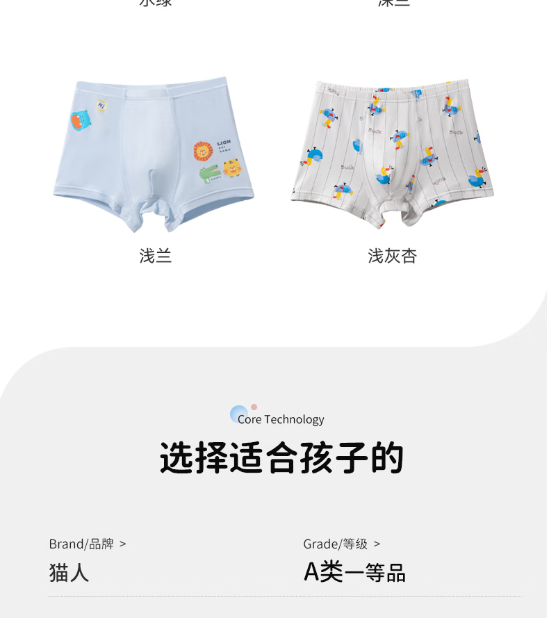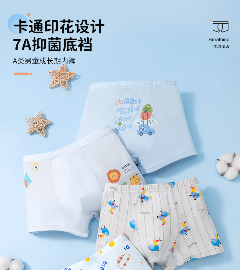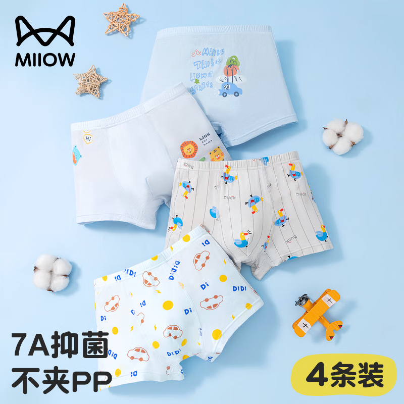 MiiOW boys' underwear, baby boxer shorts, children's medium and large children's thin summer breathable boxer briefs 4/pack of Class A fabric + 7A antibacterial crotch 1 170 M 110CM