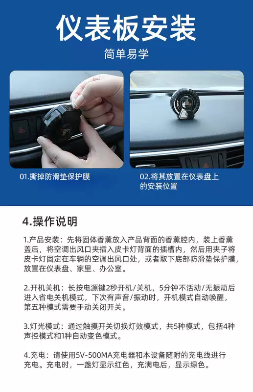 Yusenyi Car Air Vent Aromatherapy Rhythm Light Smart Perfume Fragrance Car Pickup Light Voice Controlled Music Atmosphere Light (Add to favorites and shopping cart for priority delivery and damage compensation guaranteed) 1g 1 bottle