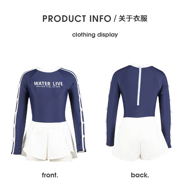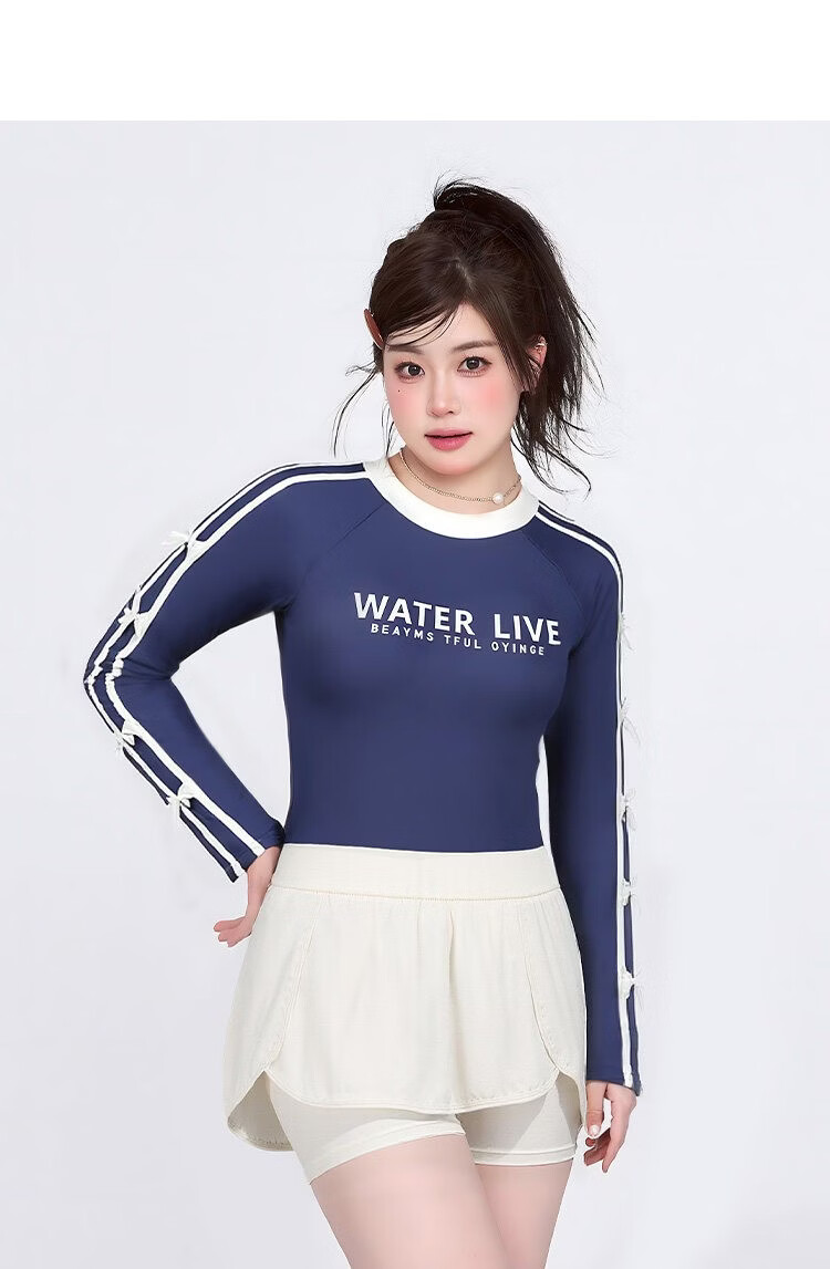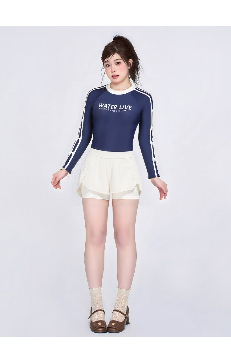 Agliondy long-sleeved large size swimsuit women's sports training fat mm feeling 2025 new swimming pool exclusive navy blue (two-piece set) XL