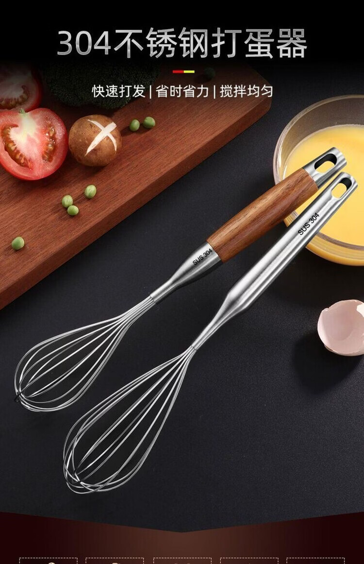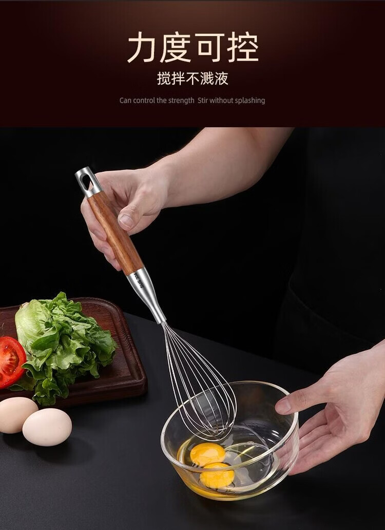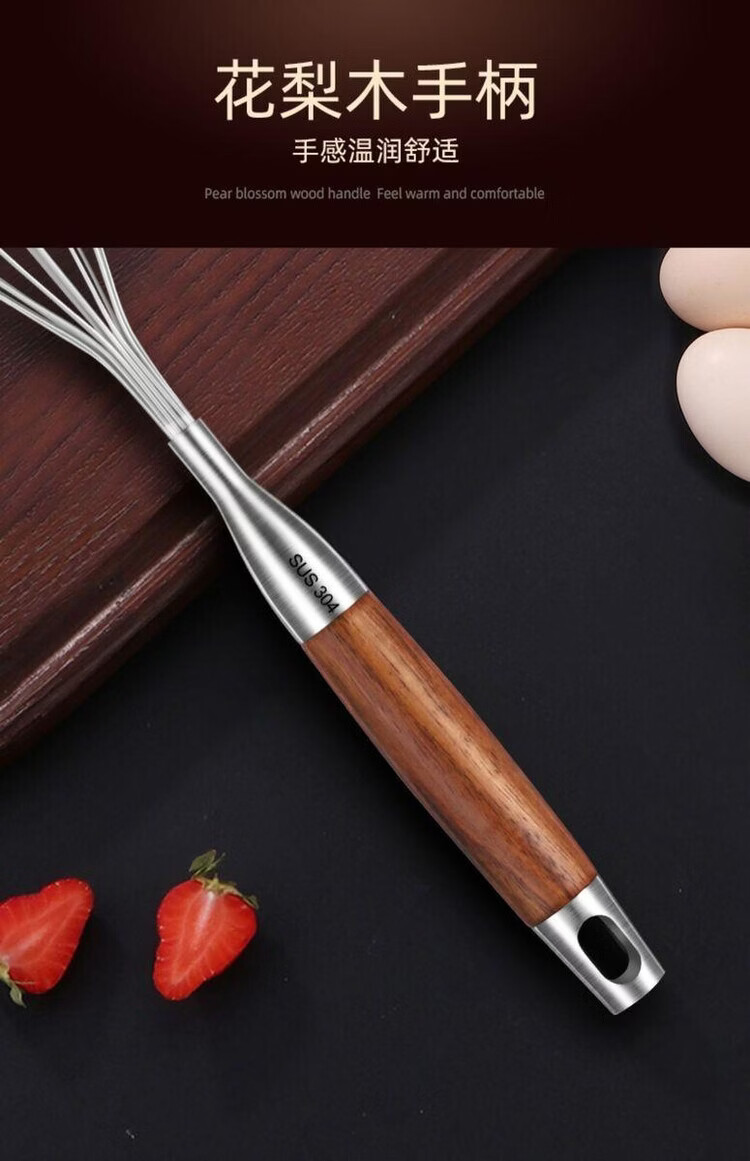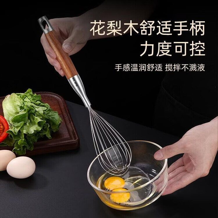 Raft core German craft egg beater manual stainless steel bold household baking mixer whipped cream egg beater egg beater - walnut model (thin handle)
